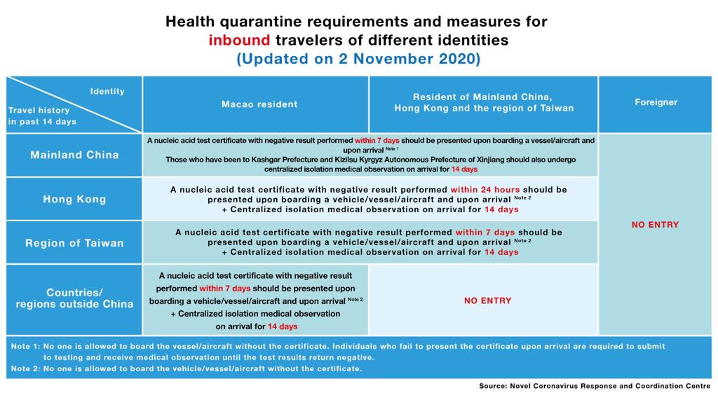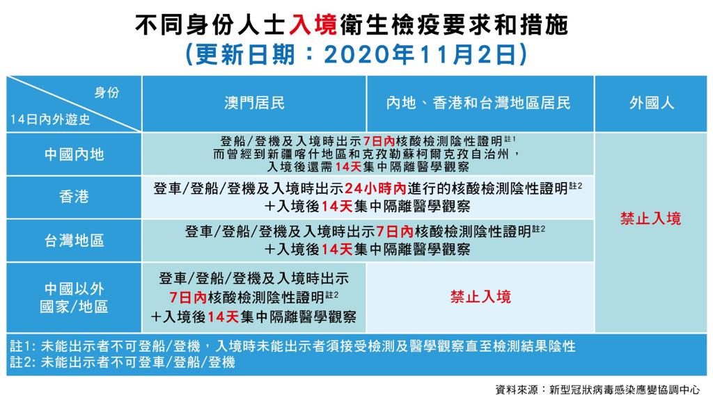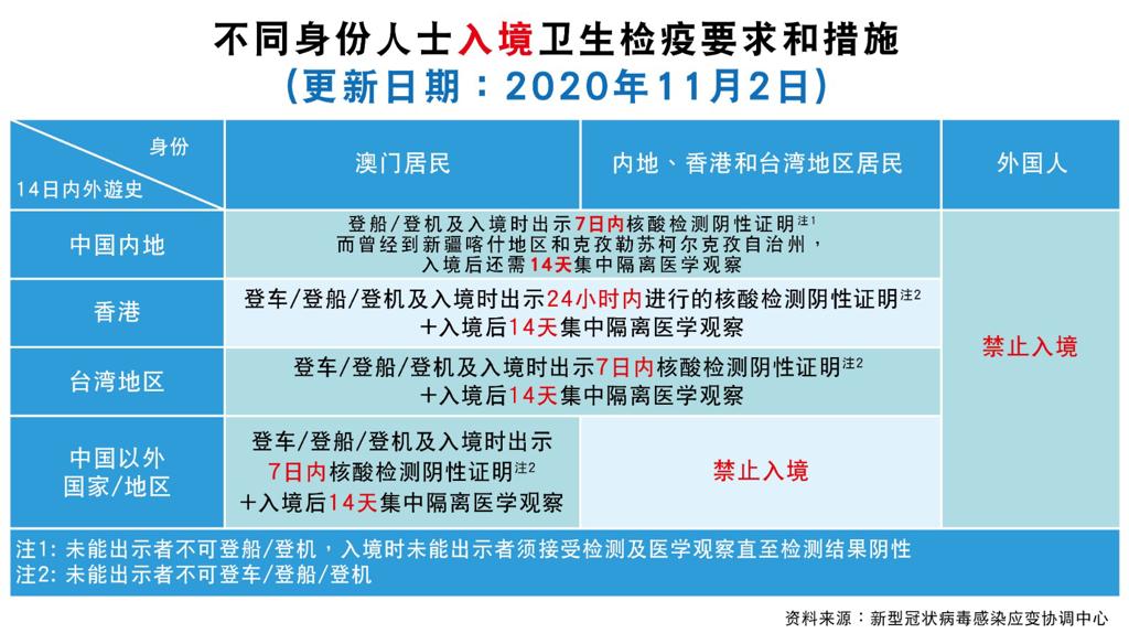 【圖文包】不同身份人士入境澳門衛生檢疫要求和措施