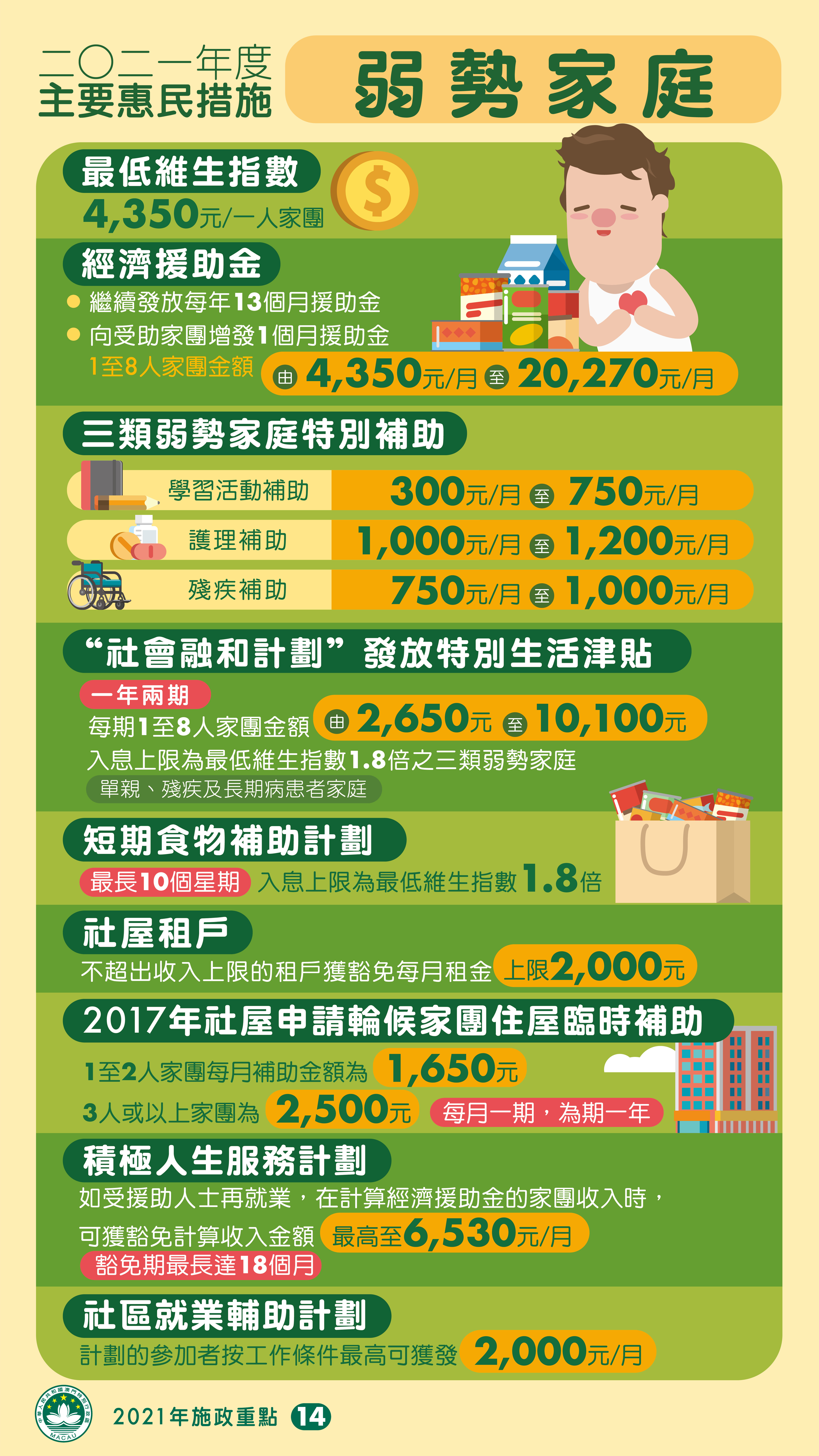 2021年度的主要惠民措施:弱勢家庭