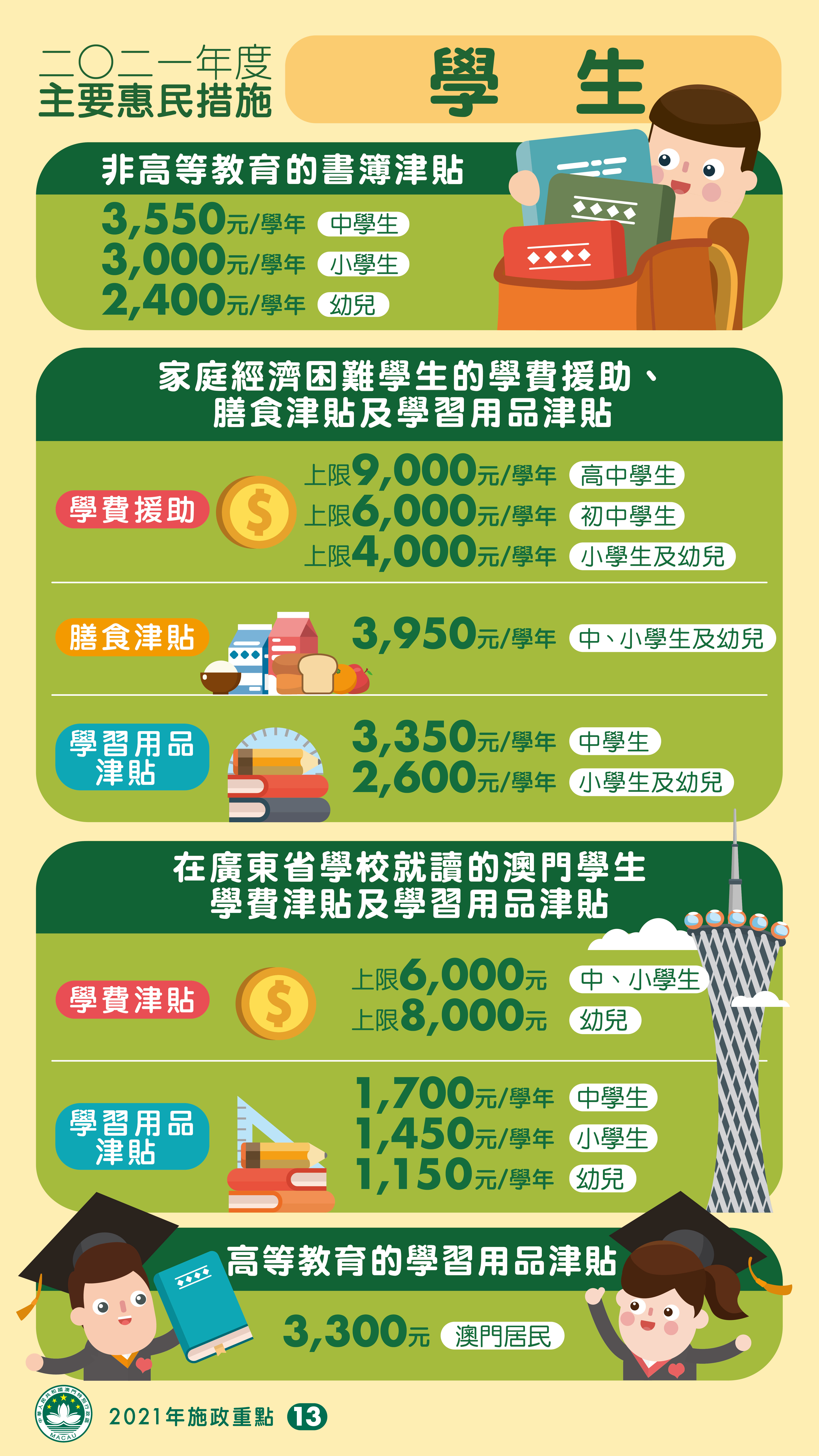 2021年度的主要惠民措施:學生