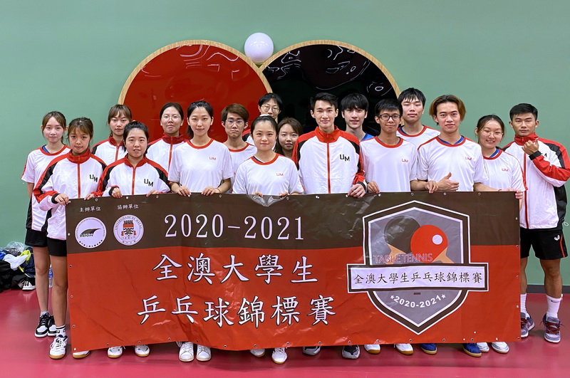 澳門大學乒乓球隊參加澳門專上學生體育聯會舉辦的“2020-2021全澳大學生乒乓球錦標賽”,分別於女單、男單、女雙、男雙、混雙五個項目奪得2金2銀6銅共10面獎牌。