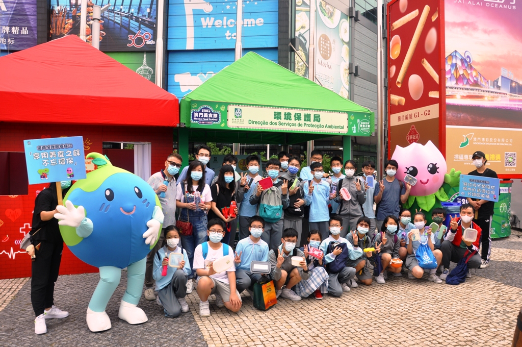 環境保護局連續第十一年於美食節期間推動「美食節減廢計劃」,向大眾宣傳減少使用膠袋自備環保袋、減少使用一次性餐具、資源垃圾分類回收、廚餘回收等“源頭減廢”訊息。日前,組織了「綠色學校」濠江中學附屬英才學校約30位師生及家長,參與「環境保護局吉祥物與您暢遊美食節」活動。
