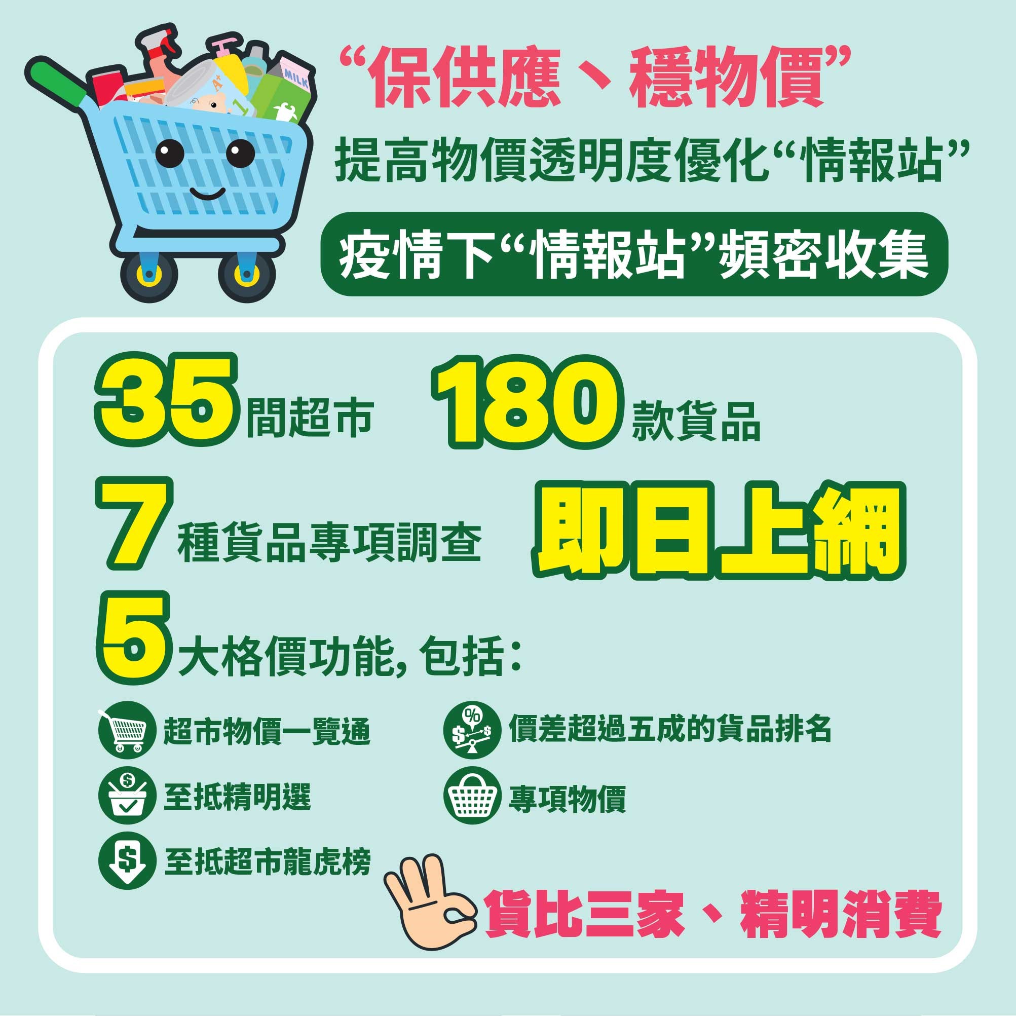 消費者只需使用“情報站”應用程式的“超市物價一覽通”、“至抵精明選”、“至抵超市龍虎榜 、“價差超過五成的貨品排名”及“購物籃”五大格價功能,足不出戶就能夠查看到最多和最“抵”價超市貨品,實行精明消費。