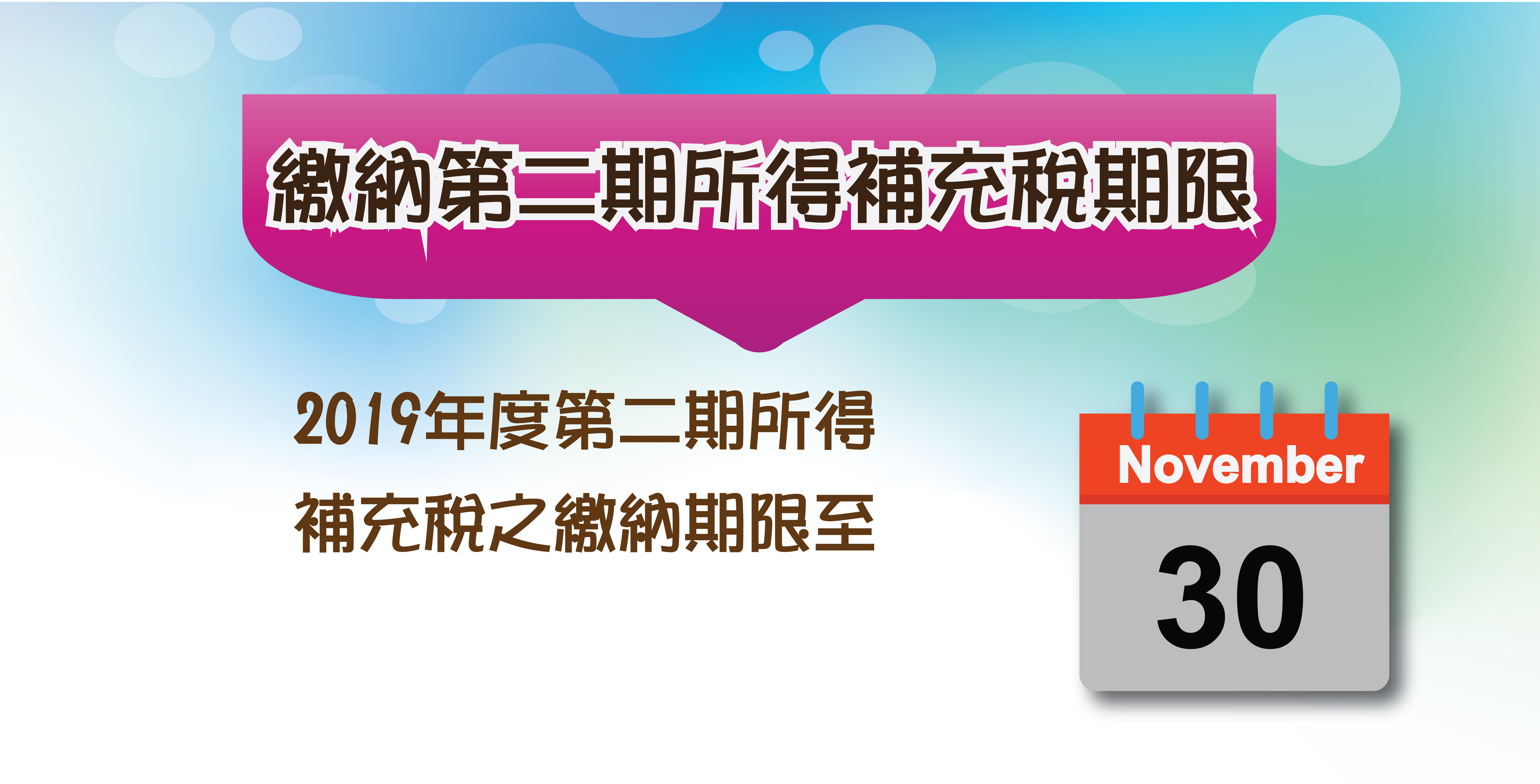 財政局提醒納稅人,繳納月份為11月第二期所得補充稅,繳納期限至11月30日止,不按憑單於月內繳納,將加徵過期利息及欠繳稅款百分之三。為免增加輪候時間或因逾期繳納而附加之過期利息和罰款,財政局呼籲倘仍未繳納上述所得補充稅之納稅人,請儘快利用財政局提供的繳稅方式繳納所得補充稅,亦可於辦公時間內,到指定銀行櫃位或透過銀行提供電子交易方式,或位於南灣大馬路財政局大樓、龍成大廈、政府綜合服務大樓及離島政府綜合服務中心收納處繳交。