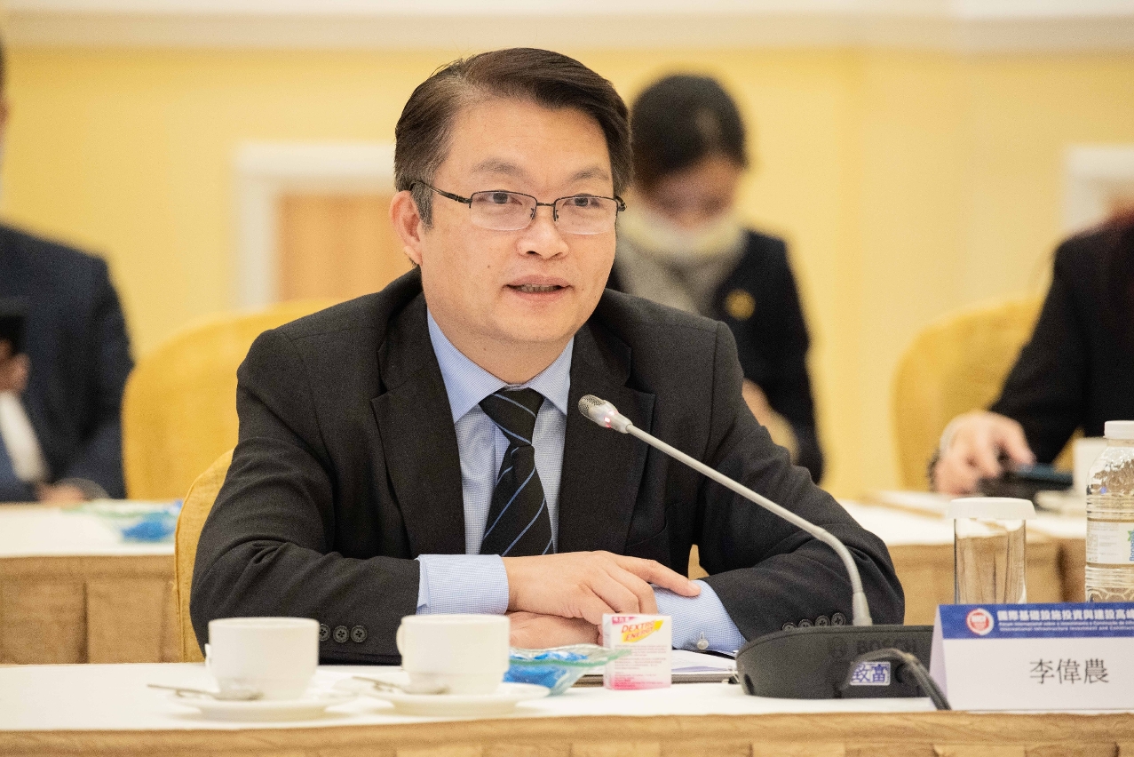 經濟財政司司長李偉農在發言中表示,澳門作為“21世紀海上絲綢之路”的重要節點城市,在國家發展和對外開放、尤其是中葡合作和交往中,發揮著重要的平台作用。國家賦予澳門“一中心、一平台、一基地”的戰略定位, 為澳門透過“基建論壇”等會議會展活動,充分發揮處於國家經濟雙循環交匯點的平台角色作用,為高質量、高水平及高標準參與和助力國家“一帶一路”建設奠定了基礎。澳門將緊緊圍繞“一中心、一平台、一基地”的發展定位,把握好國家經濟雙循環重大機遇,服務國家所需,發揮自身所長,在持續推進特區各項基礎設施建設的同時,加快推動粵港澳大灣區和“一帶一路”建設,包括在基礎設施、產能合作、金融配套服務等領域的聯動合作,並透過持續深耕會展業,強化對接服務,助力新形勢下的國家對外開放和經濟大循環,在新時代背景下,為“一帶一路”建設肩負起更重要的使命。