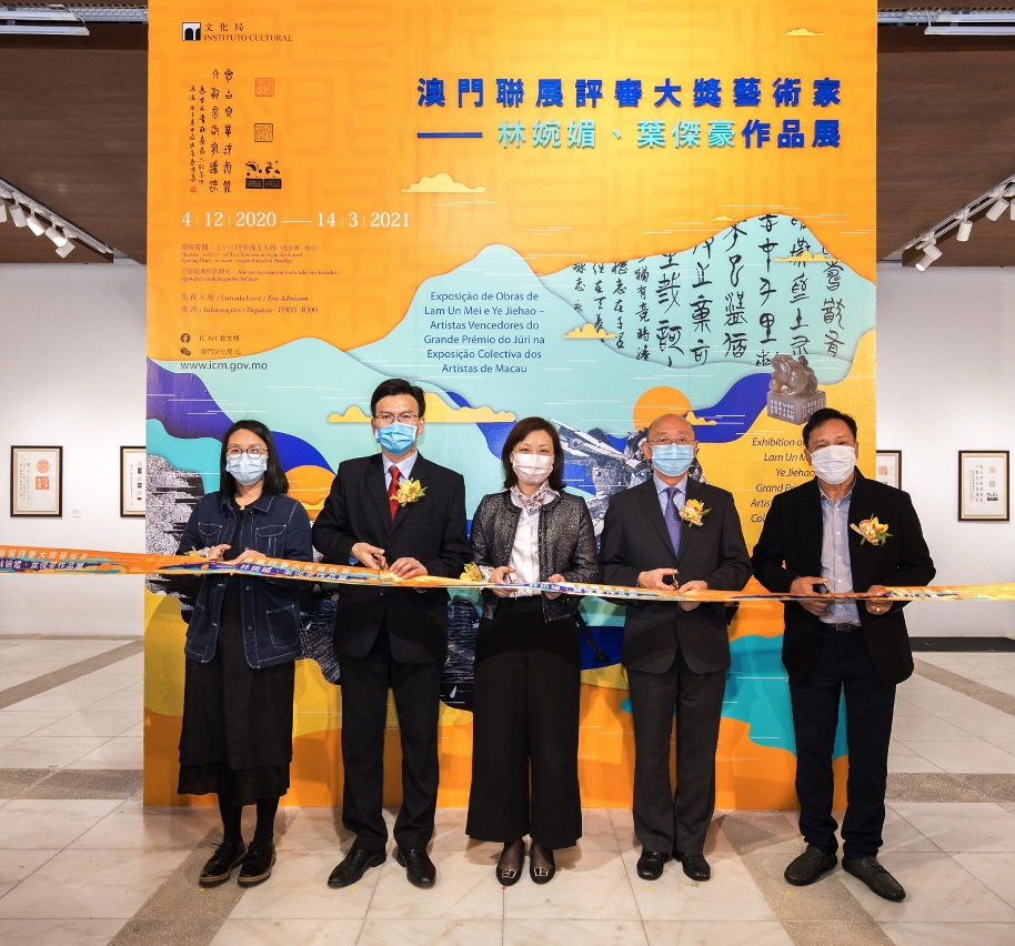 由文化局主辦的“澳門聯展評審大獎藝術家──林婉媚、葉傑豪作品展”今天(12月3日)在龍環葡韻匯藝廊舉行開幕式,文化局局長穆欣欣、中央人民政府駐澳門特別行政區聯絡辦公室宣傳文化部助理王宇偉、澳門日報社長陸波、參展藝術家林婉媚及葉傑豪主禮。