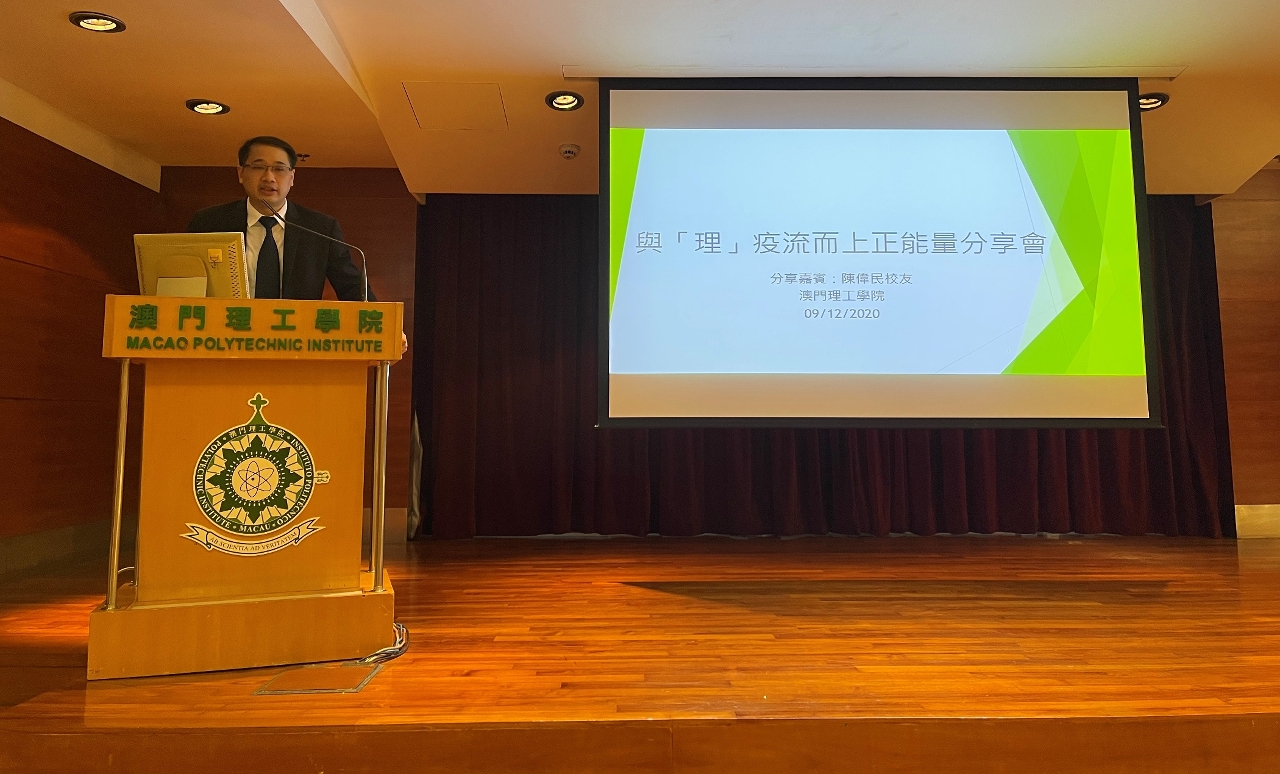 為培養學生正向人生觀,樹立積極向上的校園氛圍,澳門理工學院學生事務處日前舉辦“與「理」疫流而上—正能量分享會”,邀請傑出校友陳偉民老師分享自身的勵志故事,藉此勉勵學生在防疫常態化下以健康積極的心態面對挑戰,同時為學生人生及職涯規劃上提供啟發與指引。