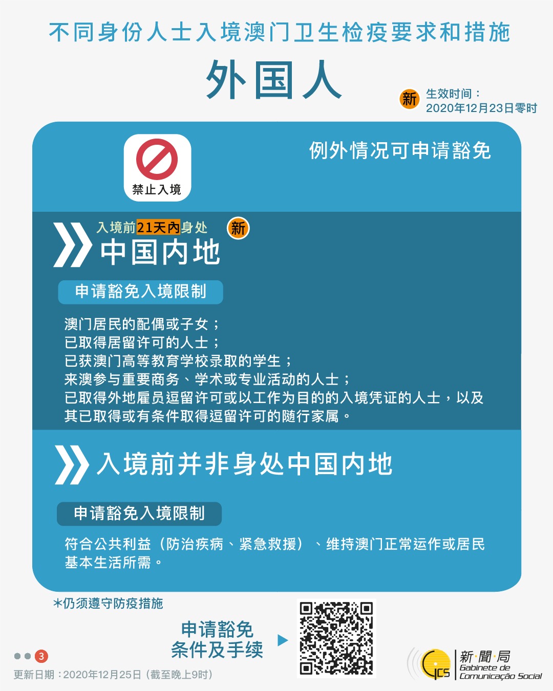 【圖文包】最新入境澳門衛生檢疫要求和措施