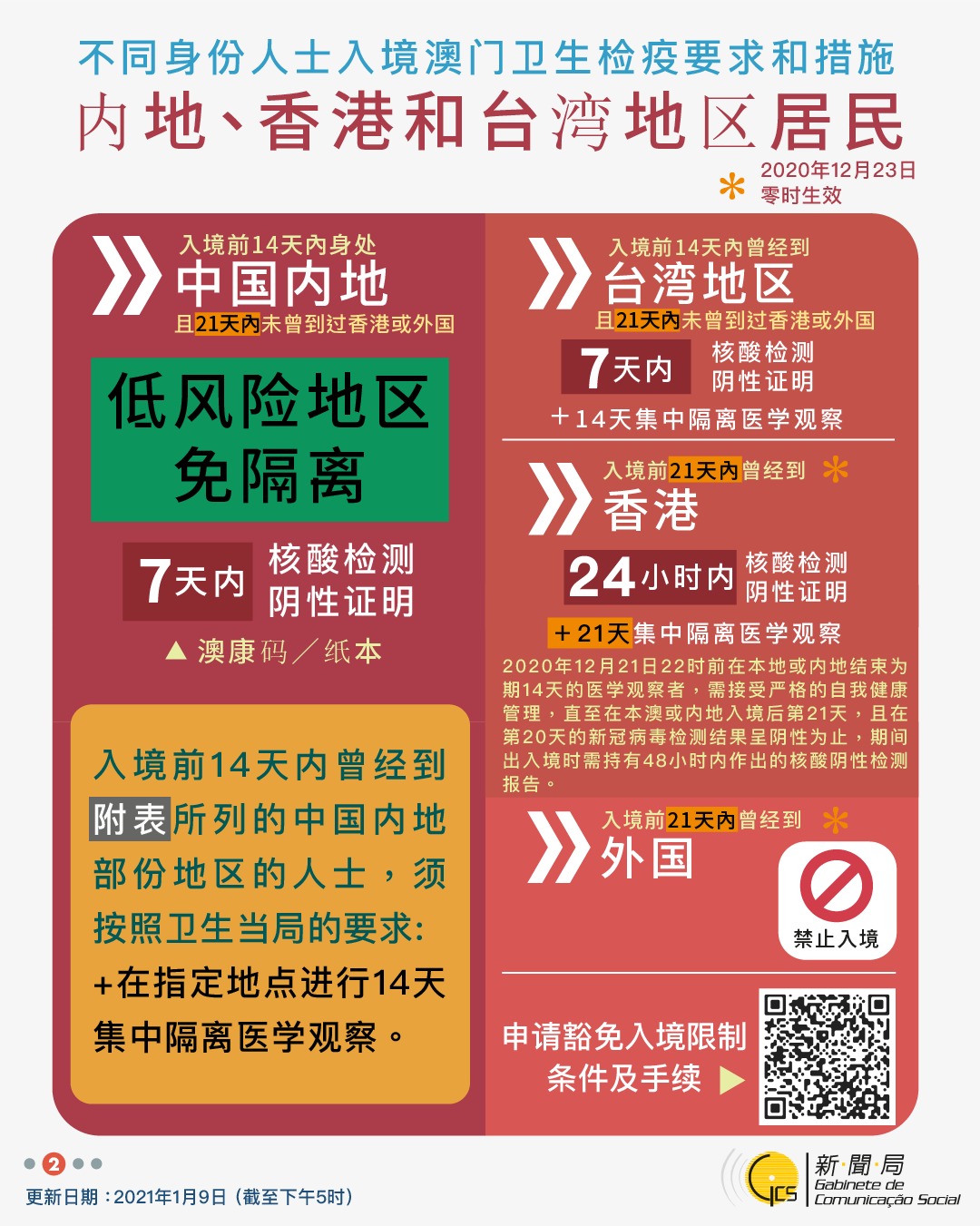 【圖文包】2021/01/09最新入境澳門衛生檢疫要求和措施