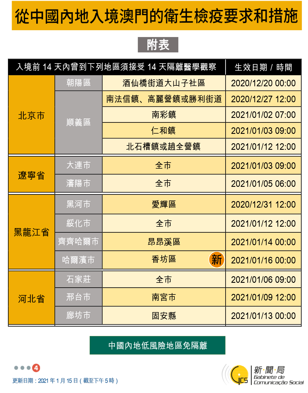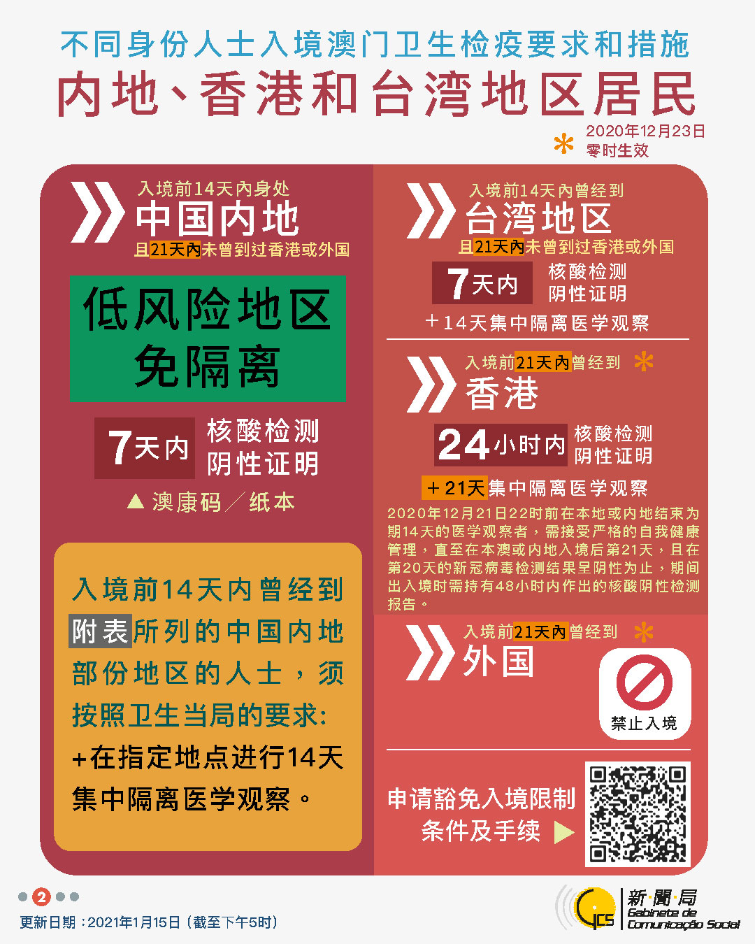 【圖文包】2021/01/15最新入境澳門衛生檢疫要求和措施