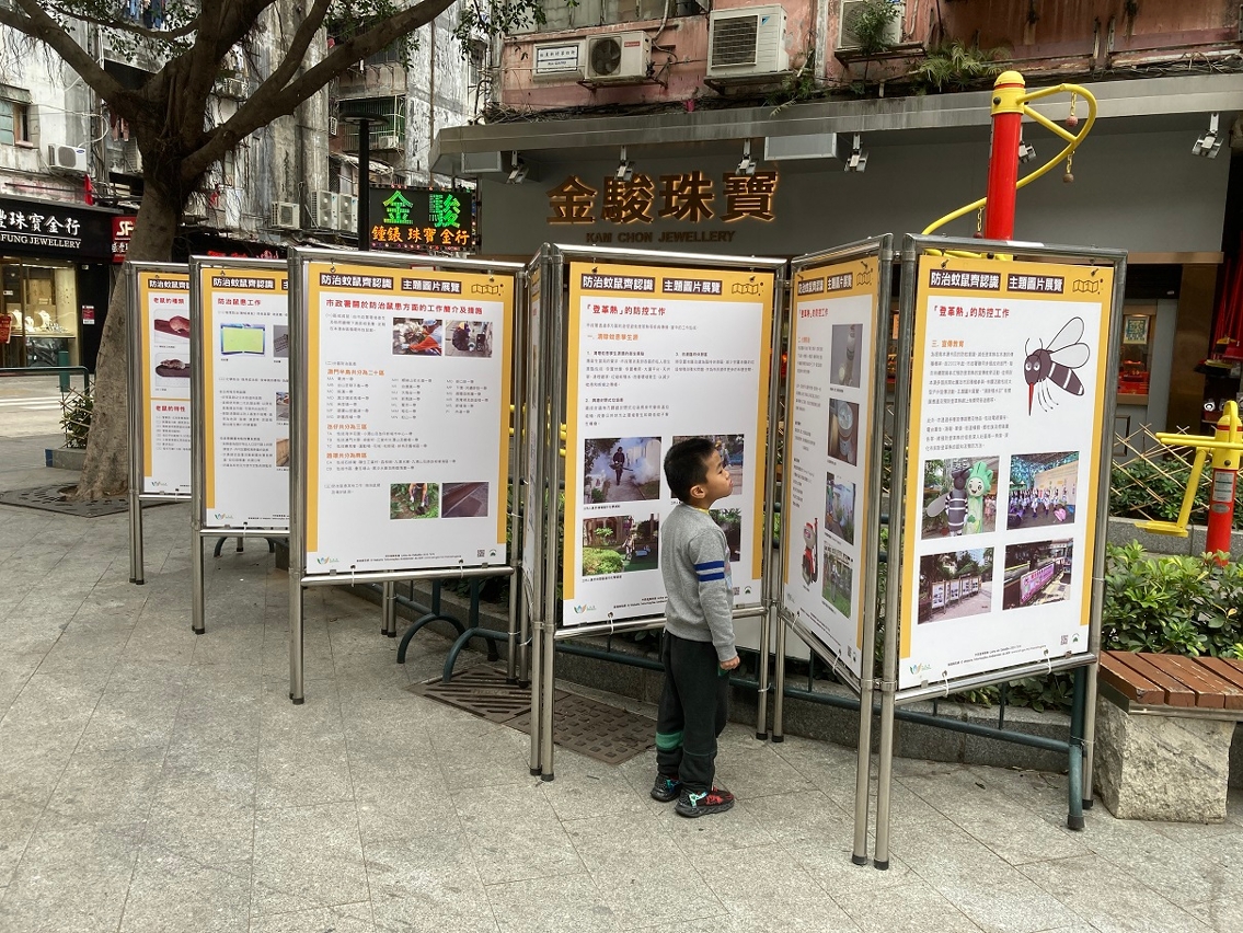 隨着春天到來,蚊蟲活動亦將更為活躍。為讓市民掌握自行處理家中鼠患蟲害的正確方法,並了解市政署在維持公共地方衛生及防治蚊鼠方面的工作,市政署於一月起在各區巡迴擺放「防治蚊鼠齊認識」主題圖片展覽。展覽擺放地點及日期如下:祐漢新村第四街休憩區(一月四日至十日)、宏開宏建休憩區(一月十一日至十七日)、綠楊花園休憩區(一月十八日至二十四日)、司打口休憩區(一月二十五日至三十一日)及氹仔花城公園近成都街側之空地(二月一日至七日)。