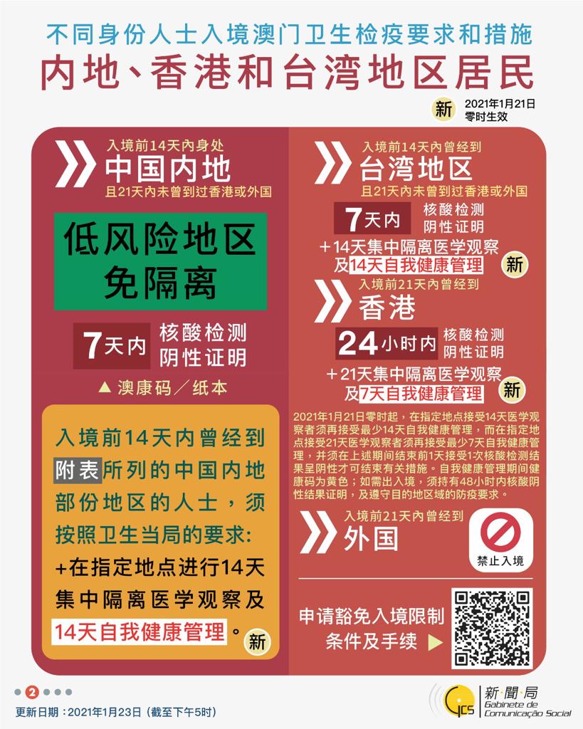 【圖文包】2021/01/23最新入境澳門衛生檢疫要求和措施