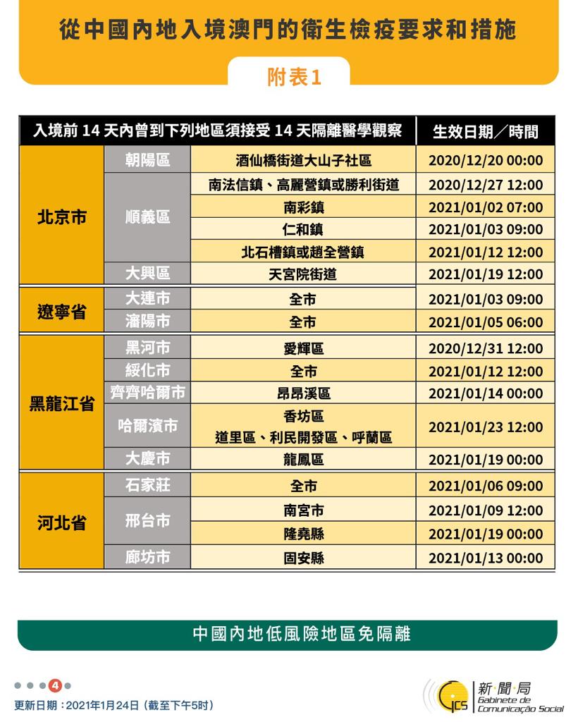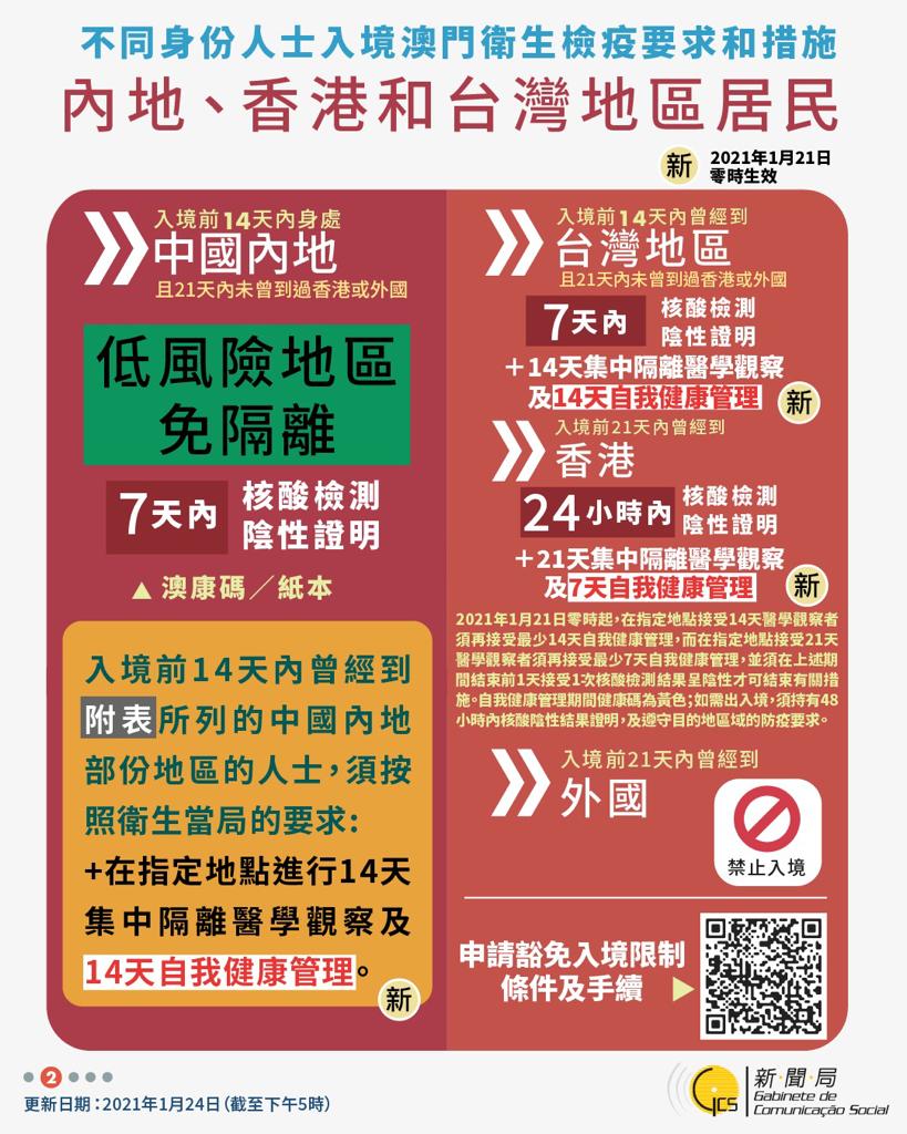 【圖文包】2021/01/24最新入境澳門衛生檢疫要求和措施