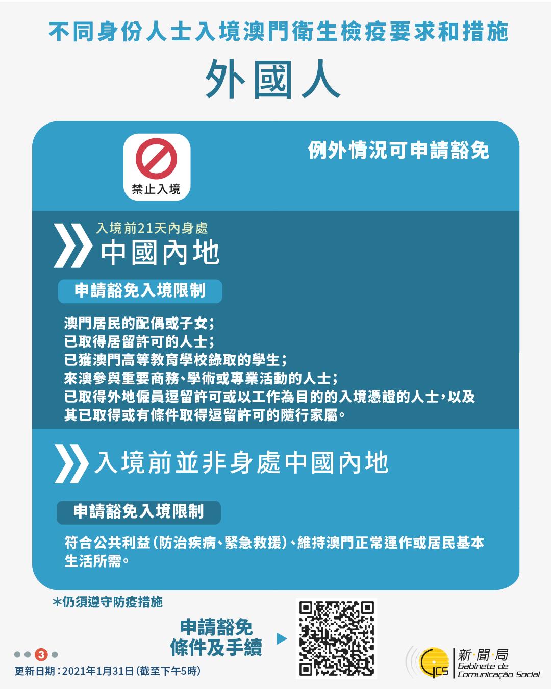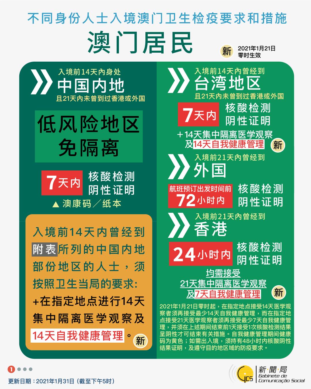 【圖文包】2021/01/31最新入境澳門衛生檢疫要求和措施