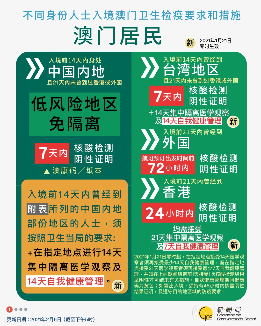 【圖文包】2021/02/06最新入境澳門衛生檢疫要求和措施
