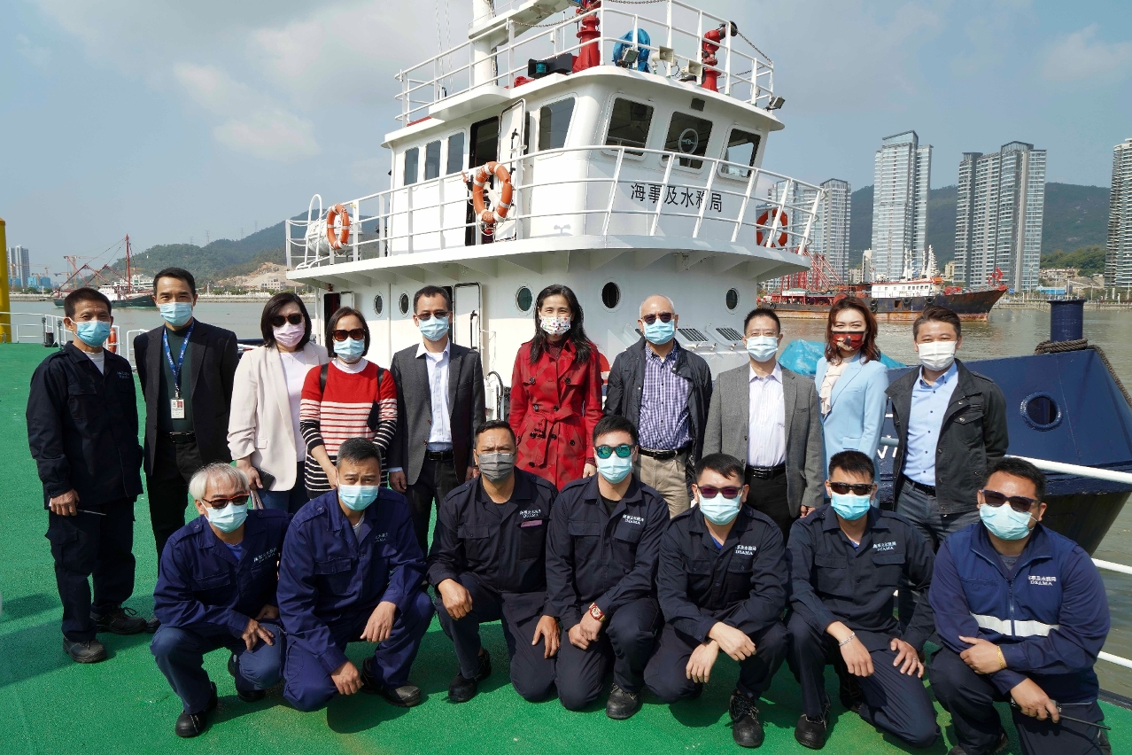 海事及水務局局長黃穗文與相關主管和同事今早(14日)到海上客運口岸、值勤設施和船舶及海事博物館巡視,並視察駐守的救援船隻和人員。