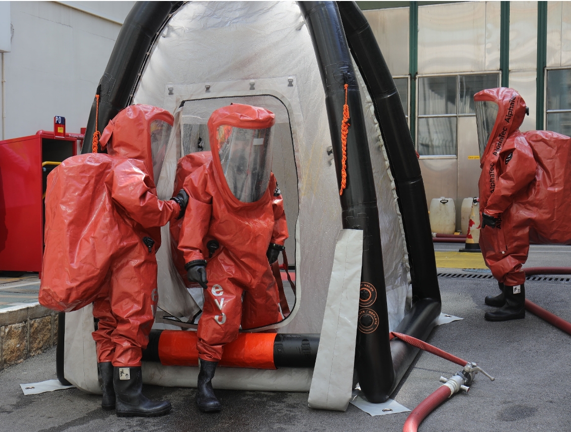 為加強與好利安藥廠在發生事故時的應變措施及協調溝通機制,消防局於本年2月24日上午,與好利安製藥科學股份有限公司在氹仔好利安藥廠聯合舉行化學危險品火警及疏散演習。