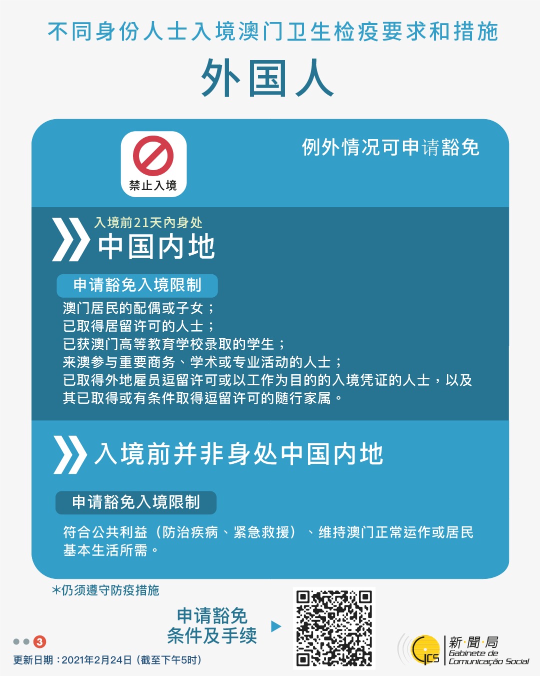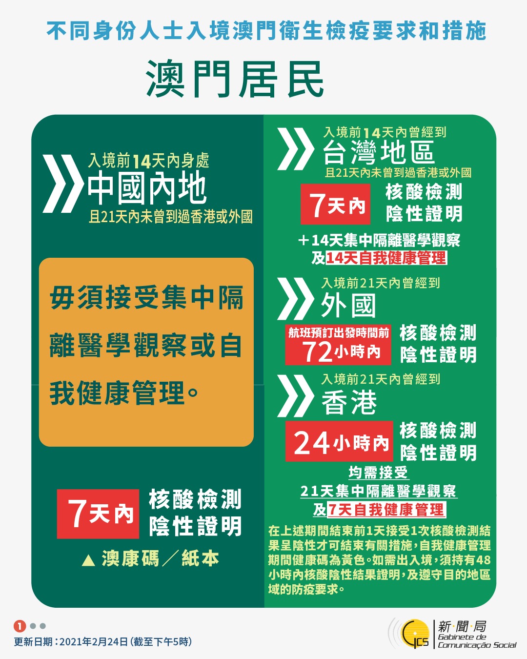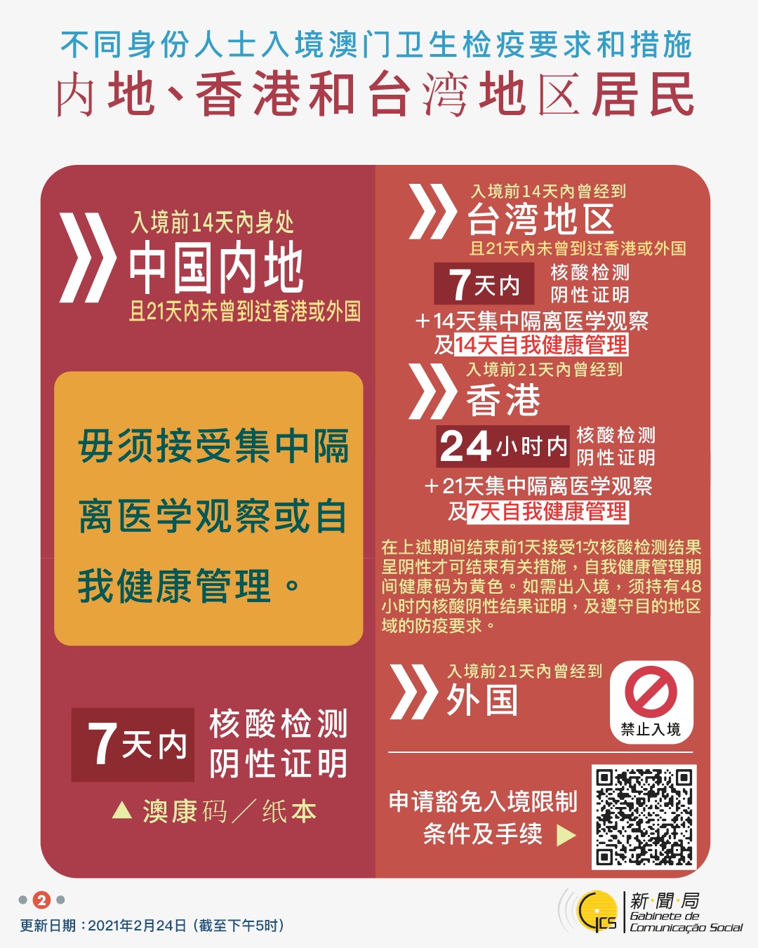 【圖文包】2021/02/24最新入境澳門衛生檢疫要求和措施