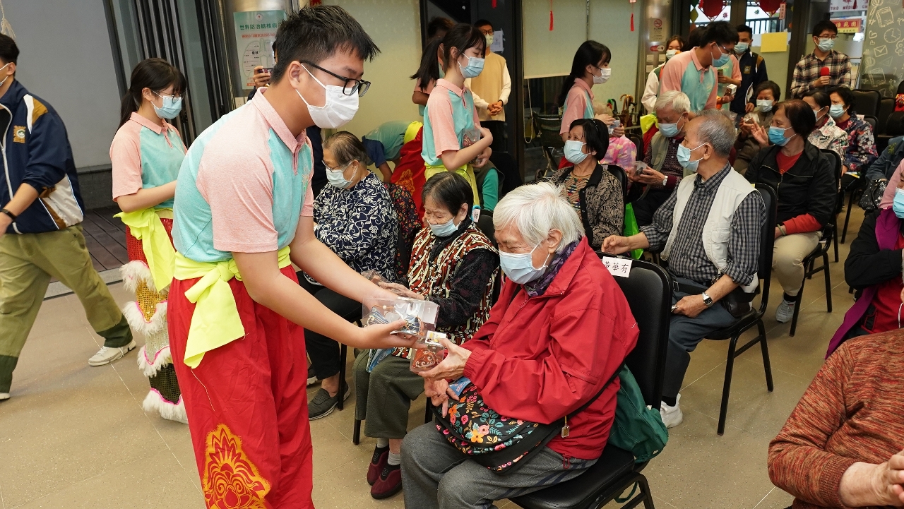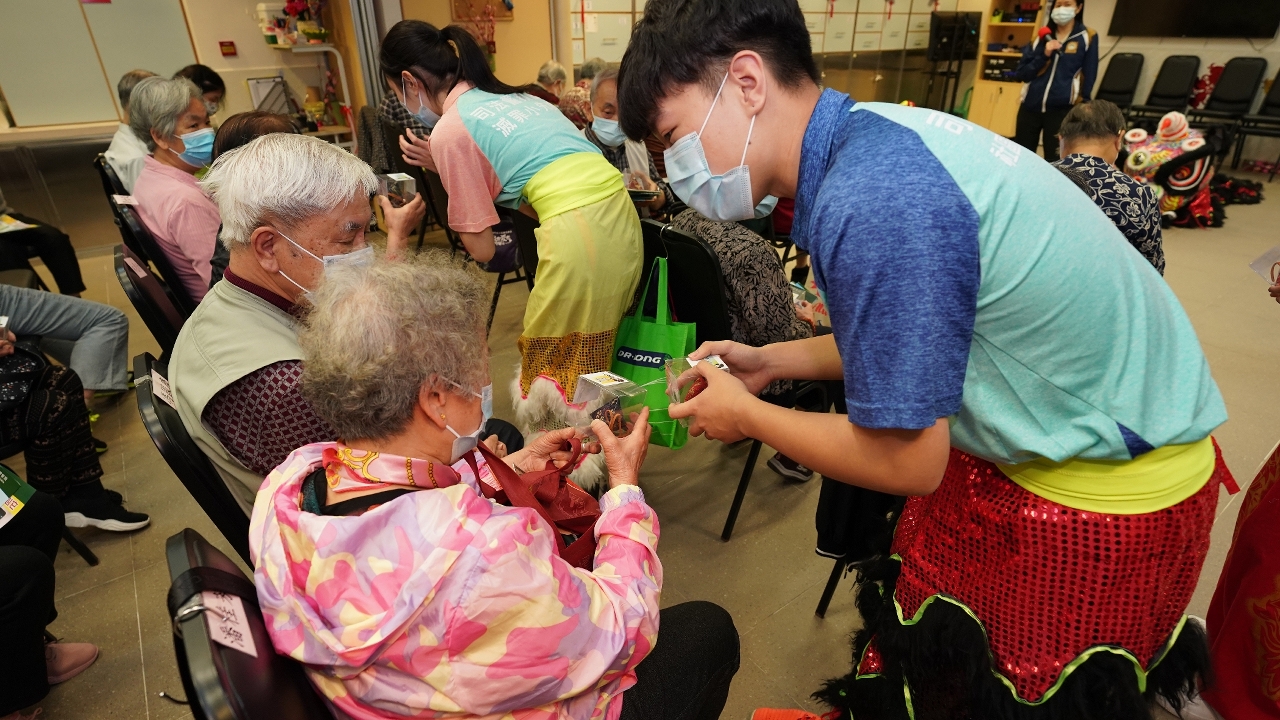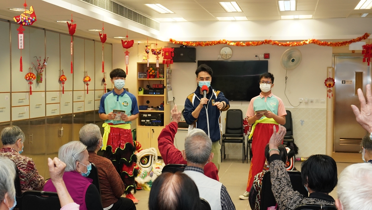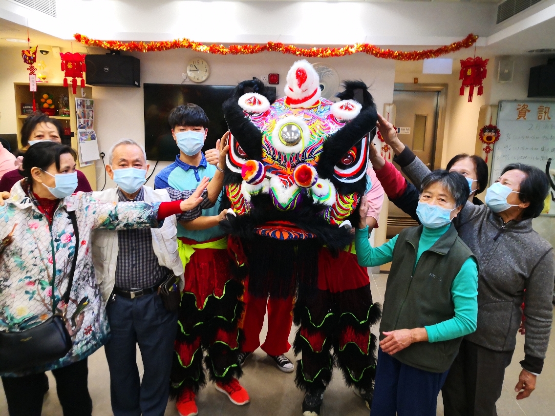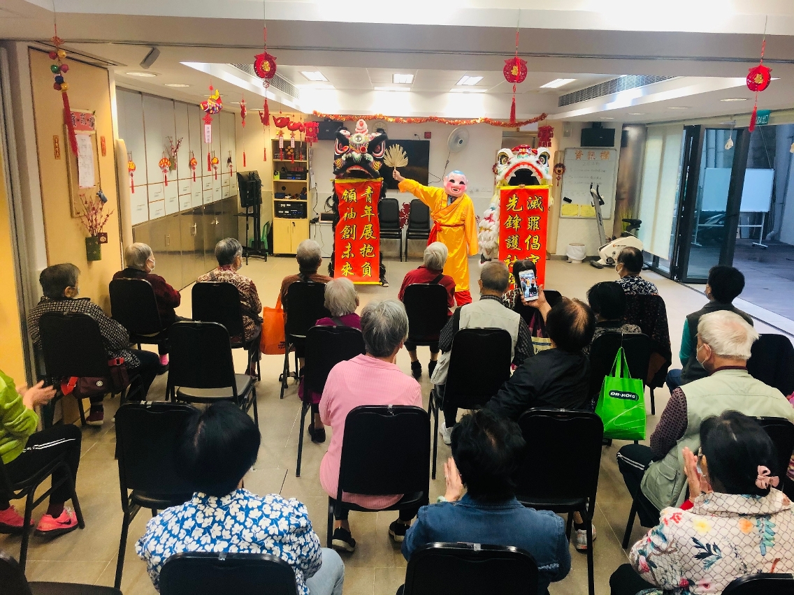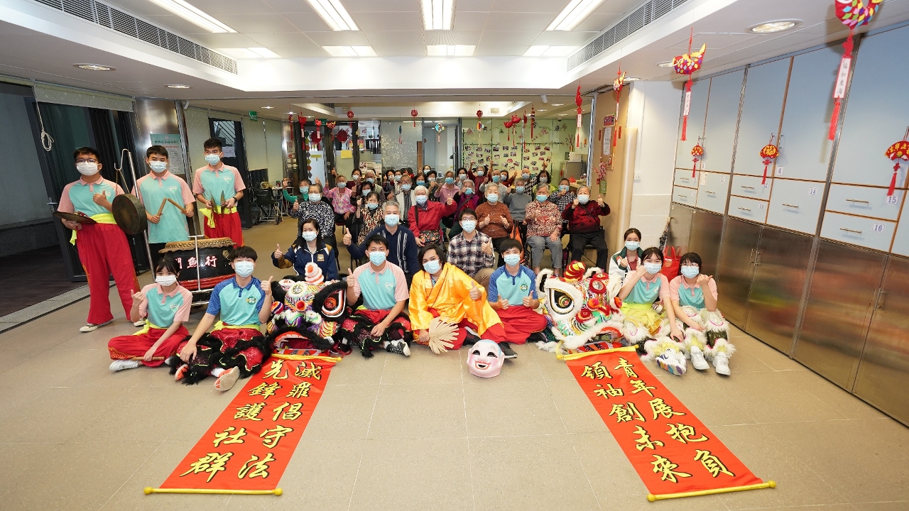 2月27日上午,在中心的營運團體澳門明愛安排下,司警局人員帶領上述兩項青年計劃學員一行12人探訪下環老人中心。因正值新春期間,學員們先行向中心內的長者拜年及送上自製特色香包,並向一眾“老友記”噓寒問暖。隨後,由兩項青年計劃學員組成的舞獅隊表演舞獅,令長者們能近距離感受過年時節的熱鬧場面,表演結束後,學員們邀請長者上前觸摸獅頭和試敲鑼鼓,以表達美好祝願,過程中更聆聽他們分享過年點滴和經歷。