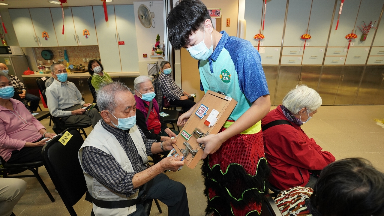 在組織充滿年味的環節同時,司警局人員與一眾學員安排了防罪教學互動環節,讓一眾長者認識近期坊間常見案件,如詐騙、盜竊等犯罪的案發情況、不法份子的作案手法和防範對策,提醒做好防罪措施;兩項青年計劃學員亦以“手把手”互動教學的方式,透過家居防盜小教具和防騙海報,帶動長者們成為“精明防罪老友記”;接著,更準備有獎問答環節,加深長者們對於防範有關犯罪措施的印象。