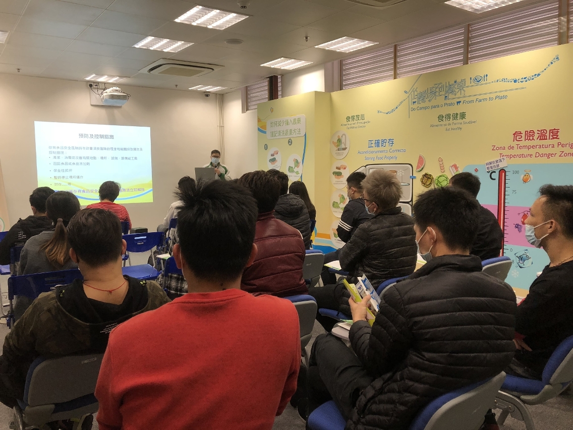 市政署食品安全廳一直致力推動食品安全教育與培訓工作,恆常於每月最後一個星期四下午三時至五時,在祐漢小販大樓一樓食品業界專區舉辦「食品安全與環境衛生基礎班」。課程內容涵蓋《食品安全法》、食安標準,以及食品安全操作指引等,藉此加深業界對《食品安全法》中所訂明的責任及義務的認識,從而嚴格遵守法例及食安標準生產經營。同時,課程以《外賣及堂食處理食品衛生指南》為輔助教材,介紹食品的採購、貯存、處理、個人衛生及日常操作中容易忽略的食安要點等,並會根據「食品安全五要訣ABCDE」,向修讀者講解避免交叉污染(Avoid Cross Contamination)、謹慎選購(Buy Right)、保持清潔和徹底煮熟(Clean and Cook Completely)、危險溫度帶(Danger Temperature Zone),以及努力維護澳門食品安全(Efforts to maintain Macao food safety)等關鍵技巧及重要理念。
