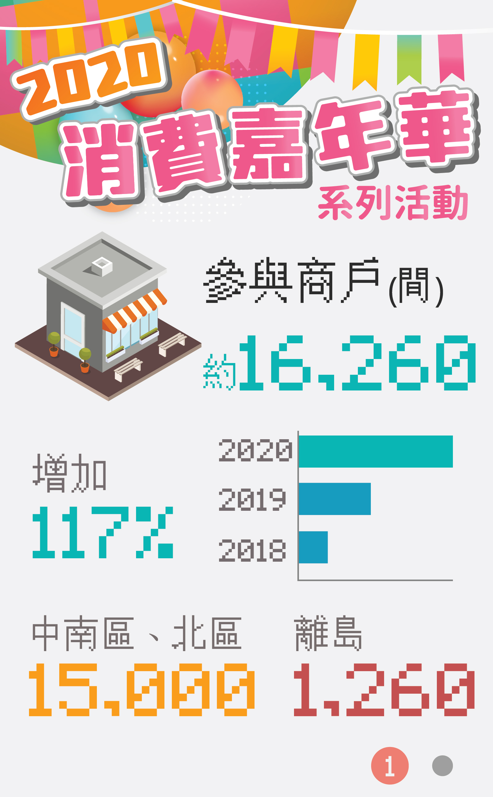 2020年的“消費嘉年華”系列活動合共獲超過1.6萬間商戶參加,涉及交易額逾9.8億澳門元,均較去年增加超過1倍。而截至今年2月底,近860萬澳門元的“中小企電子消費券”已被核銷,導向中小商戶的二次消費額超過2.6億元。