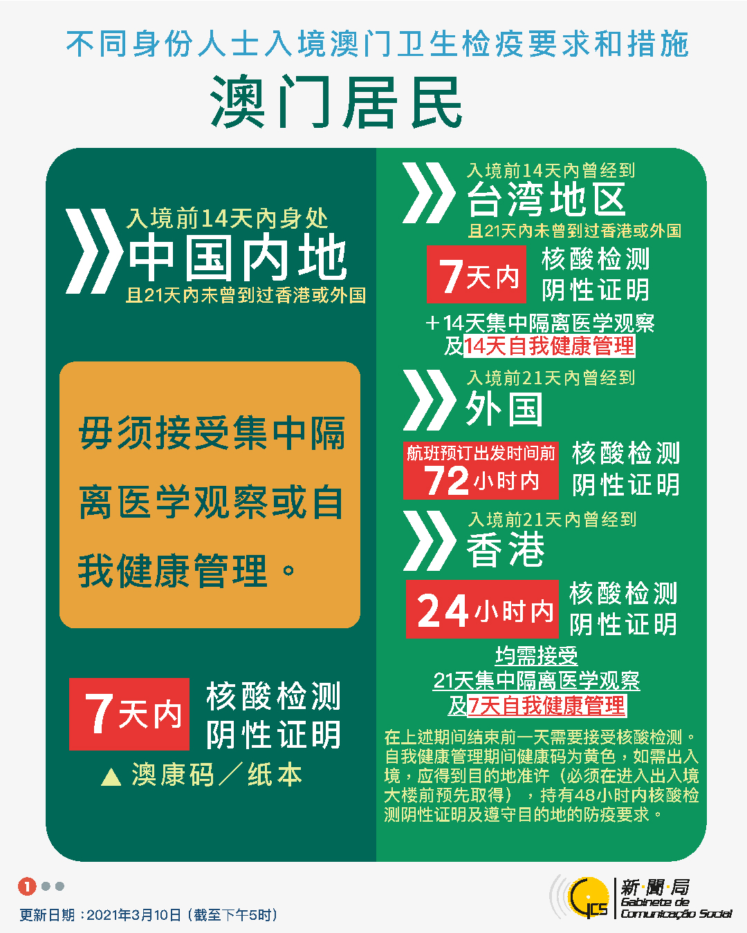 【圖文包】2021/03/10最新入境澳門衛生檢疫要求和措施