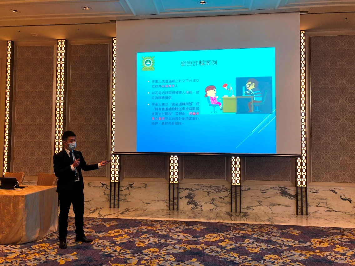 工作坊上,司警局刑偵人員講解局方報案程序及與博彩相關的最新犯罪趨勢,並透過播放防罪宣傳短片及分享真實案例,詳述網戀、投資理財及電話詐騙等犯罪手法,以及講解偽造文件、偽鈔、清洗黑錢等犯罪的法律知識,並向博彩業前線員工傳授防罪錦囊。其後,司警局刑偵人員與他們進行分組座談,解答他們工作和生活上遇到的治安問題,冀他們將防罪知識分享給親友,提升防罪意識及能力,共同防罪滅罪。