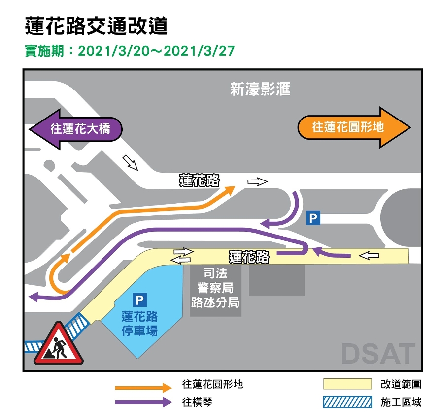 此外,建設發展辦公室於3月27日至2023年4月30日亦會開展拆除原路氹邊檢大樓建築物並建造新輕軌站之工作,故原路氹邊檢大樓內部的交通安排,將作出相應調整,其中蓮花路停車場與蓮花大橋之間的一段蓮花路(往蓮花大橋方向)實施封閉交通,往輕軌蓮花口岸站方向則實施雙向行車。