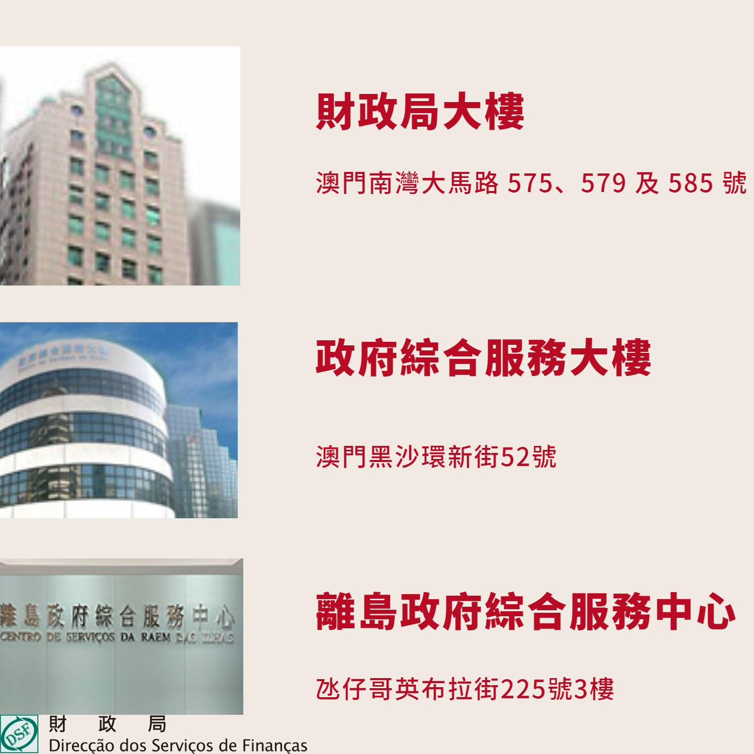 最後,財政局溫馨提示納稅人準時遞交上述表格,以免引致罰款,市民可於辦公時間內親臨以下地點,又或以電子方式遞交表格: