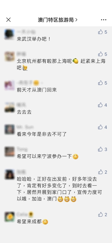 “杭州澳門周”籌備工作積極到位,活動現場-杭州湖濱步行街的戶外大型電子屏幕上顯著宣傳“健康城市”訊息,令當地群眾充分掌握澳門是安全宜遊城市。杭州市內地鐵站亦設“杭州澳門周”的宣傳廣告,營造濃厚活動氣氛。同時,旅遊局通過微信、微博、小紅書、抖音等線上媒體,電視以及報章廣告積極宣傳“杭州澳門周”,網民反應正面熱切,響應參與是次大型路展活動,並期待來澳旅遊。