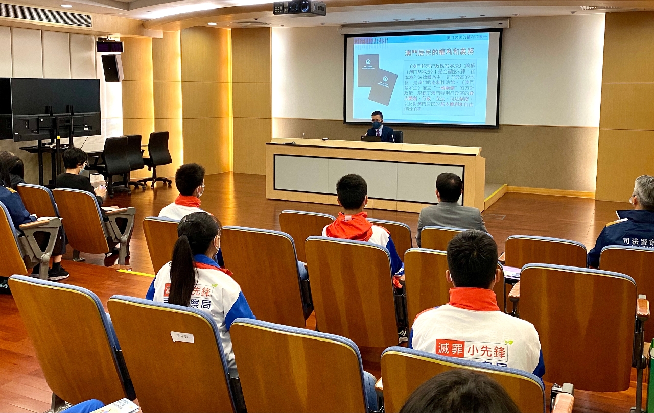 為了讓“社區安全青年領袖計劃”及“滅罪小先鋒種子計劃”學員瞭解《基本法》中澳門居民的權利和義務、《國籍法》在澳門特別行政區的適用範圍,以及在海外遇到困難或意外時的求助方法等資訊,司法警察局與中華人民共和國外交部駐澳門特別行政區特派員公署及身份證明局合辦“澳門居民的基本權利和義務、國籍法及領事保護與領事服務”專題講座。