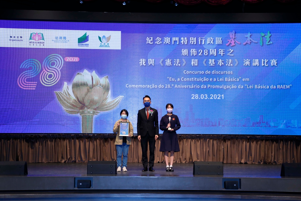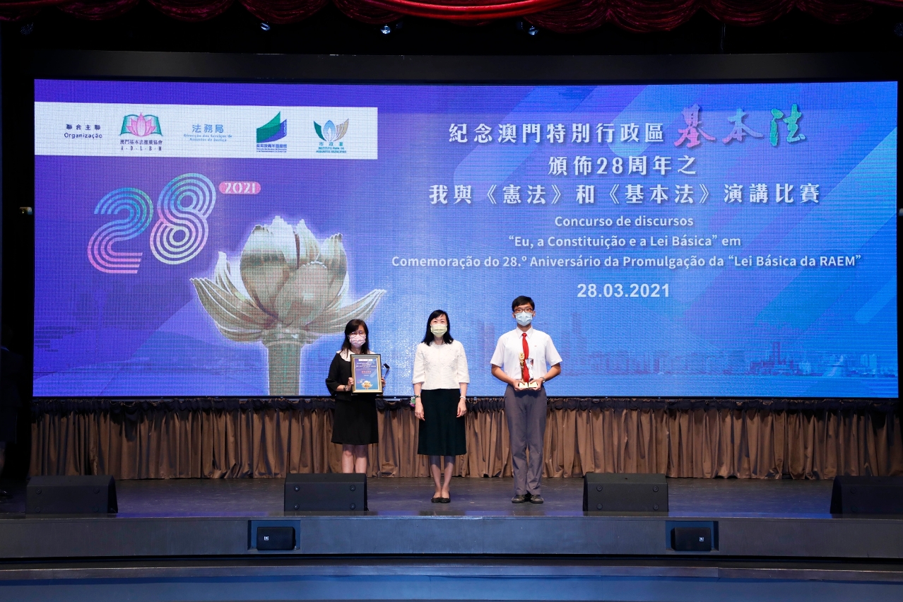 為持續向青少年推廣《憲法》和《基本法》,澳門基本法推廣協會、法務局、教育及青年發展局和市政署聯合主辦的“紀念《澳門特別行政區基本法》頒佈28周年之我與《憲法》和《基本法》演講比賽”決賽已於3月28日在聖保祿學校禮堂順利舉行。