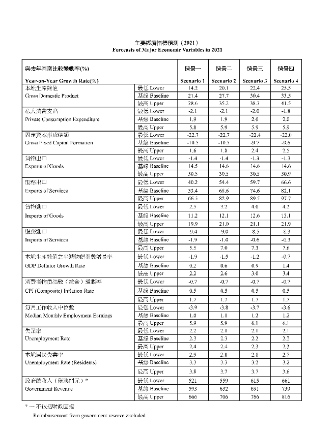 基於以上四個情景,2021經濟預測如下﹕