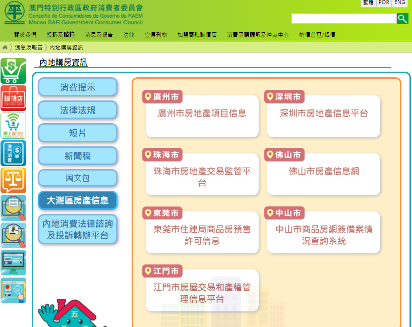 澳、深兩地就建“澳門居民內地購房聯防機制”達成共識,深圳市房地產信息平台已連線消費者委員會的“內地購房資訊”專區,現時專區已載大灣區七個內地城市的地產交易信息,居民計劃內地購房可以利用專區核實相關房產的“五證”證號及交易信息,降低風險。