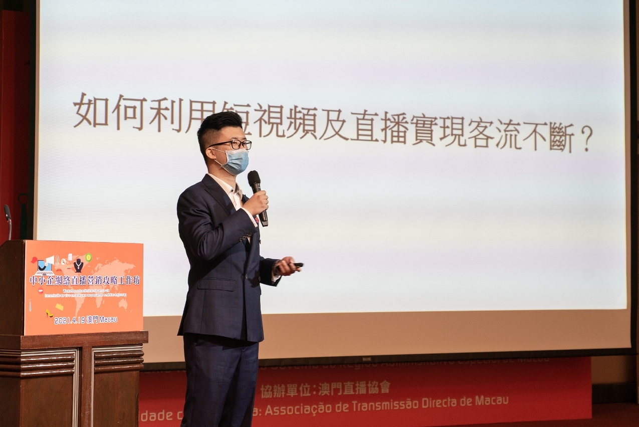 為協助澳門中小企業善用互聯網推銷優質產品及服務,加深中小企業對短視頻及直播等宣傳方式的認識,經濟及科技發展局今(19日)假澳門世貿中心五樓蓮花廳舉辦“中小企網絡直播營銷攻略”工作坊,邀請澳門直播協會代表分享如何利用嶄新網絡模式宣傳引客,並與本地中小企業進行互動交流。