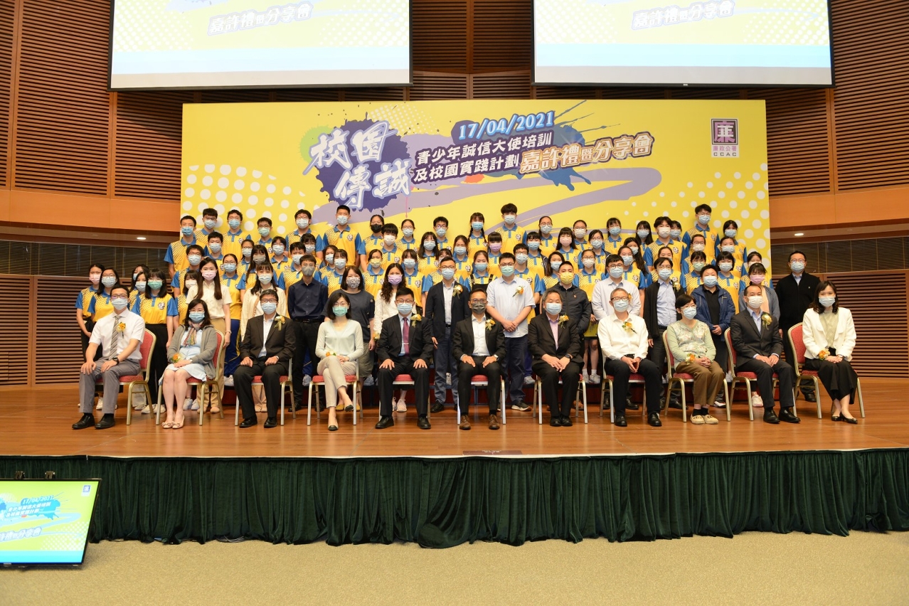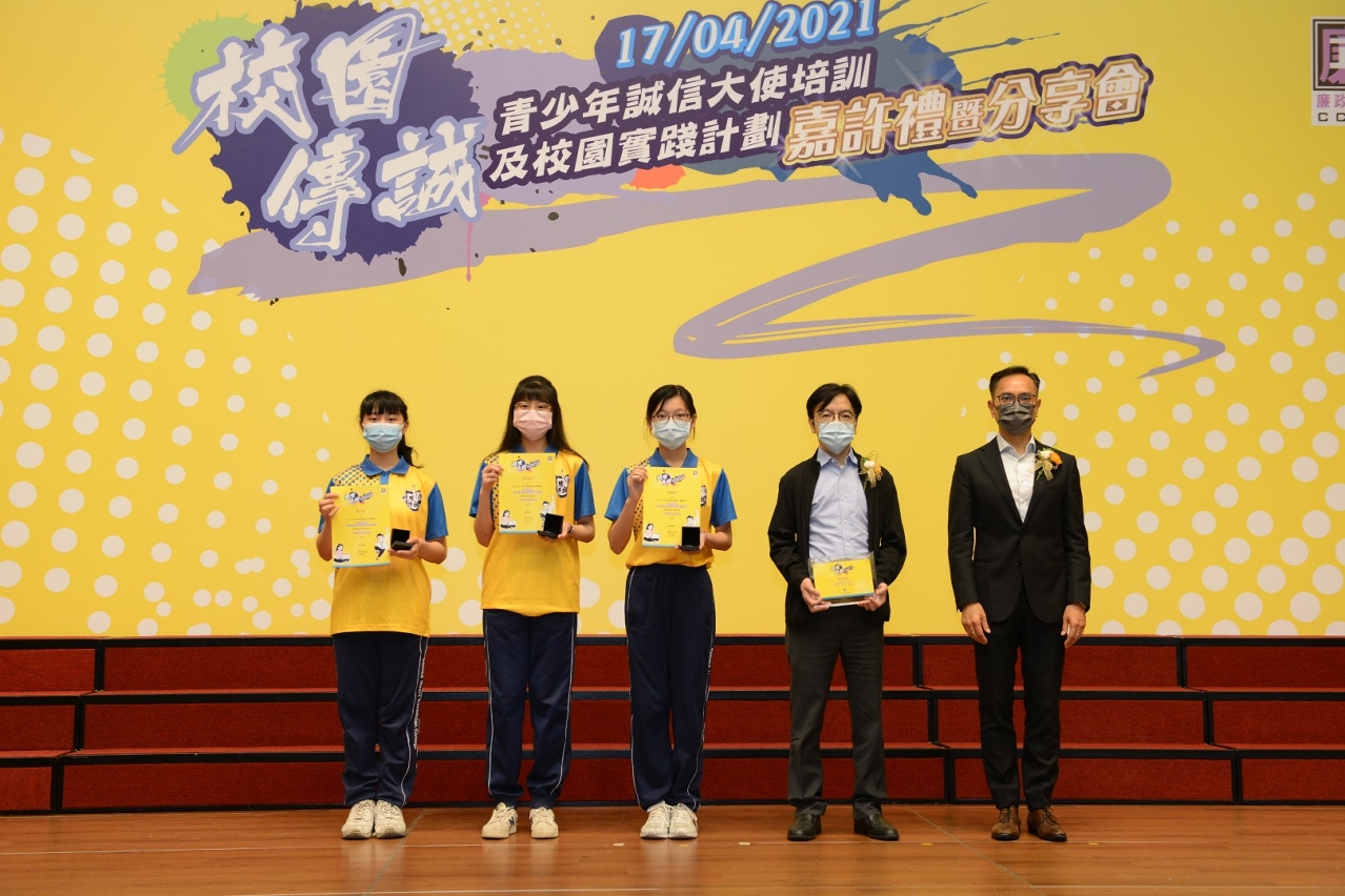 嘉許禮上,廉署除了向青少年誠信大使頒發嘉許狀外,亦向優秀隊伍頒發獎項,優秀隊伍代表也分享了他們構思、籌劃及舉辦活動的心得。出席活動的嘉賓還包括廉政公署助理專員歐陽湘、辦公室主任陳彥照、中華教育會理事長鄭洪光、天主教學校聯會理事長黃彪,以及多間學校的領導、代表等。