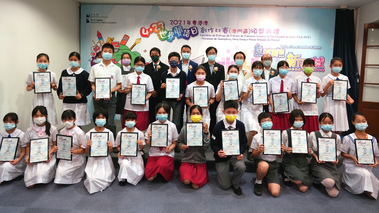 文化局轄下澳門公共圖書館、香港公共圖書館、廣東省立中山圖書館及深圳圖書館合辦2021年粵港澳“4.23世界閱讀日創作比賽”,澳門區頒獎禮於4月24日(星期六)下午3時在何東圖書館舉行,向得奬者頒發奬狀及致送紀念座予各得獎者學校,並於現場展出得獎作品,氣氛熱烈。