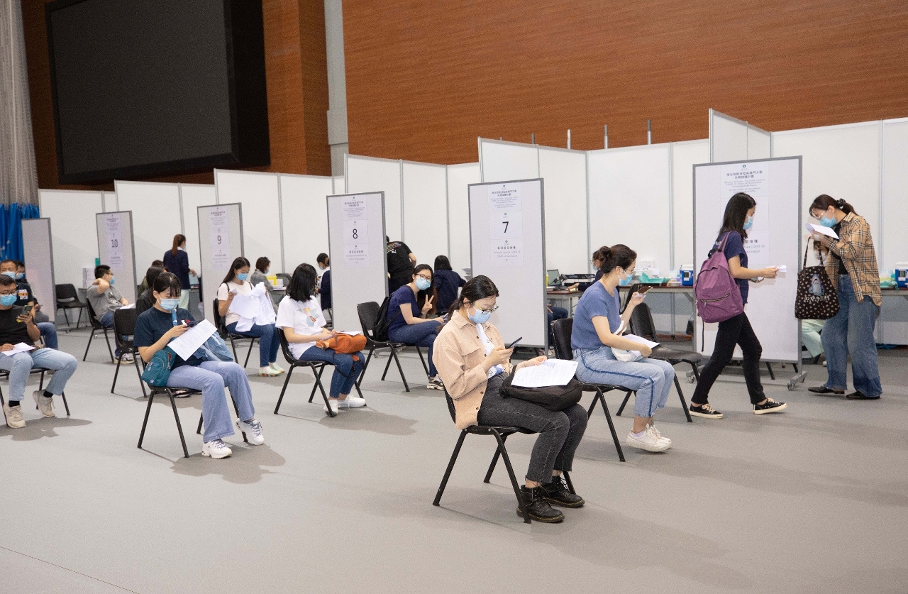 為了建立校園防疫屏障和阻斷病毒傳播,澳門大學組織師生於今(27)日起一連三日在校內接種新型冠狀病毒疫苗,預計將有超過1700名師生進行接種。澳大是政府首個在澳門開啟的外展接種計劃的機構。接種工作由澳門特區政府衛生局派員到澳大綜合體育館進行,澳大教職員、學生、外判員工及持澳門居民身份證的員工家屬可免費接種兩款疫苗。首兩天為預約者接種滅活疫苗(國藥中國生物北京),最後一天則接種mRNA疫苗(BioNTech),目前已有1700名學生及教職員預約接種。