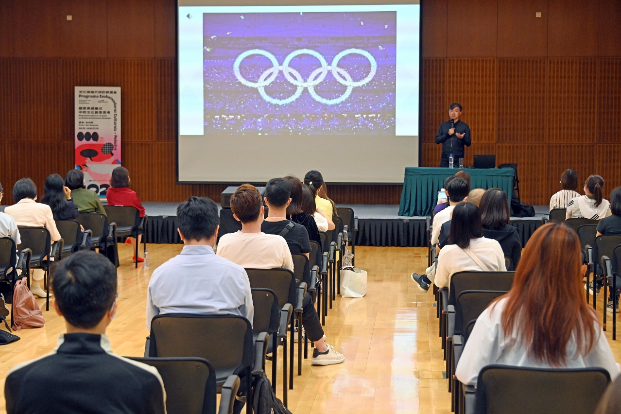 文化局局長穆欣欣出席活動,並向肖向榮教授致送“文化傳播大使”襟章,以表謝意。講座中,肖向榮教授一方面從藝術美感的角度出發,從世界的視角討論當代藝術中“關係美學”、“整體藝術”等重要概念,另一方面亦介紹從社會大眾層面思考,將作者、作品與觀眾交互構建,遵循共情、共有、共用、共域的原則,使身處於特定環境中的人,通過儀式行為激發內心激情,以藝術語彙的表達展現當代中國人的精氣神以及國家形象。現場觀眾對肖向榮教授以創新思維講解國家大型活動的規劃過程、活動內容的文化傳播價值、以及如何克服當中困難等均表現濃厚興趣,交流氣氛熱絡。