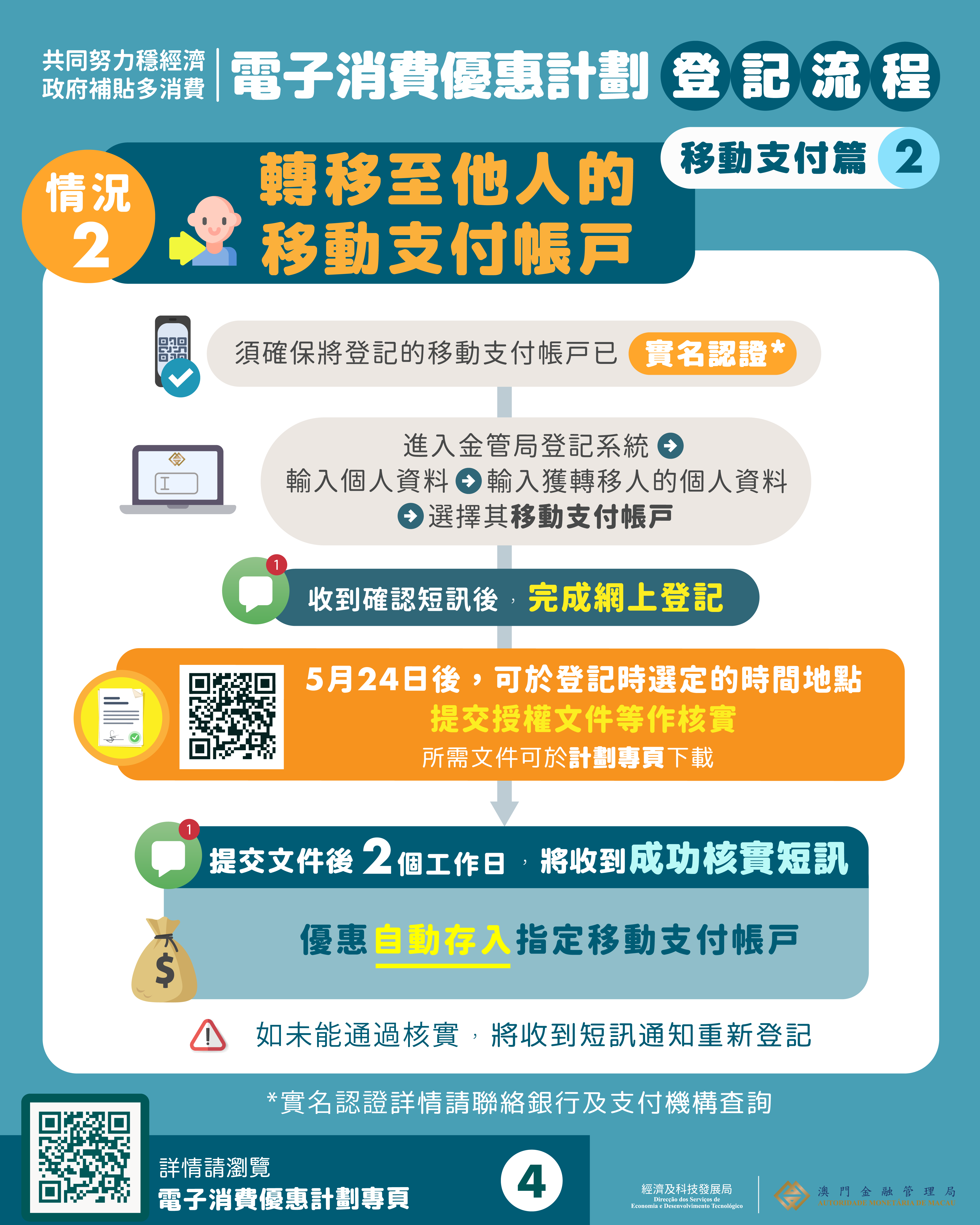 此外,多間金融機構5月亦將於週末加開部份網點,協助有需要的居民進行登記。開放的網點地點及服務時間,可聯絡相關金融機構查詢。