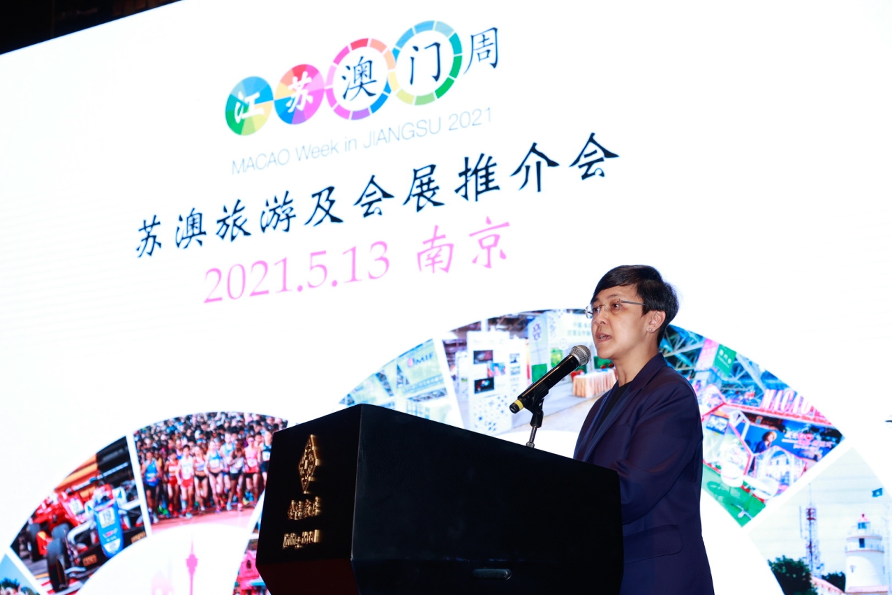 文綺華致辭時表示,期望透過是次推介會,向江蘇南京展示澳門“旅遊+會展”的跨界融合和健康安全宜遊的城市魅力,同時,讓蘇澳兩地業界探索合作空間,推出更多新的旅遊產品和服務,擴展彼此客源。