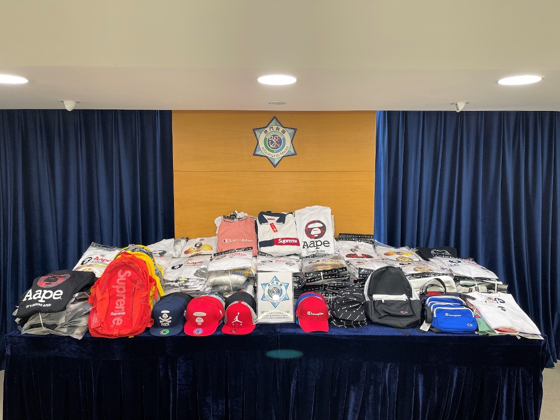 澳門海關早前接獲市民舉報,懷疑有人在社交平台上出售侵權服飾。海關接報後利用「大數據網上打假系統」搜集資料,並透過分析舉報信息,先後鎖定位於新橋區及新馬路區的三間實體店,並展開深入調查。本月12日,澳門海關見時機成熟,立即採取行動,在涉事店舖內查獲1,396件懷疑侵權服飾,種類包括衣服、帽子及背包,以正貨價格計算約值43萬澳門元。有關物品其後經相關品牌鑑定人鑑定,證實均為假冒。據涉案店舖負責人供稱,相關服飾以每件人民幣18至35元的價格從內地購入,再以澳門元50至100元的價格出售圖利。