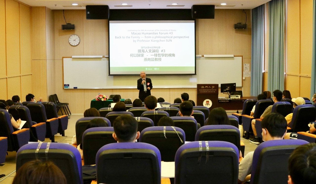 澳門大學人文學院舉辦第三屆鏡海人文論壇,由復旦大學哲學學院院長孫向晨以“何以歸家—一種哲學視角”為題發表演講,吸引不少澳大師生參加。