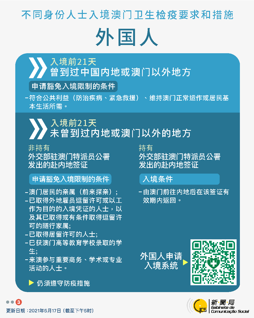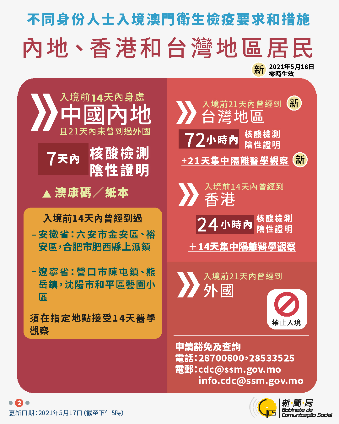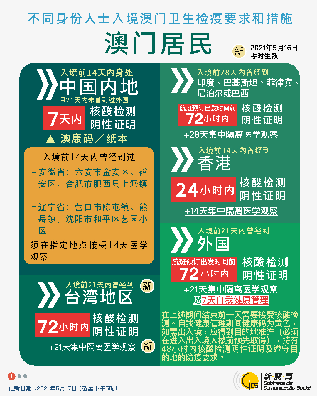 【圖文包】2021/5/17最新入境澳門衛生檢疫要求和措施