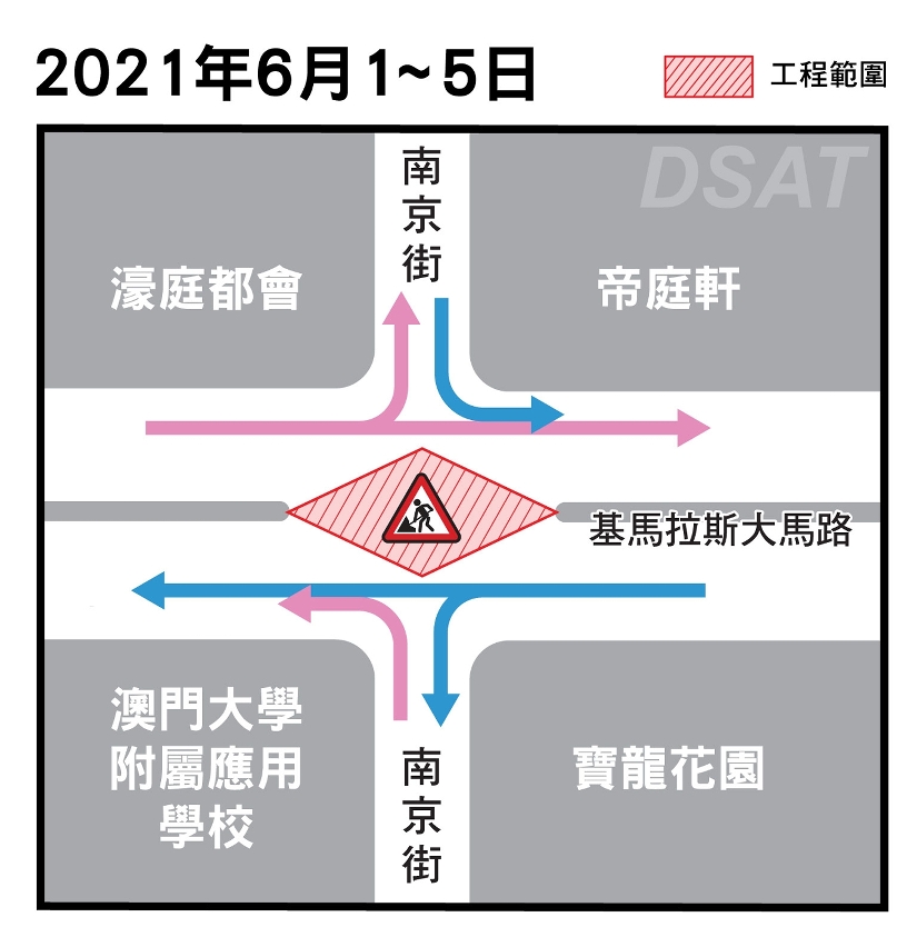 基馬拉斯大馬路與南京街交界6月1日至5日禁止車輛通行。