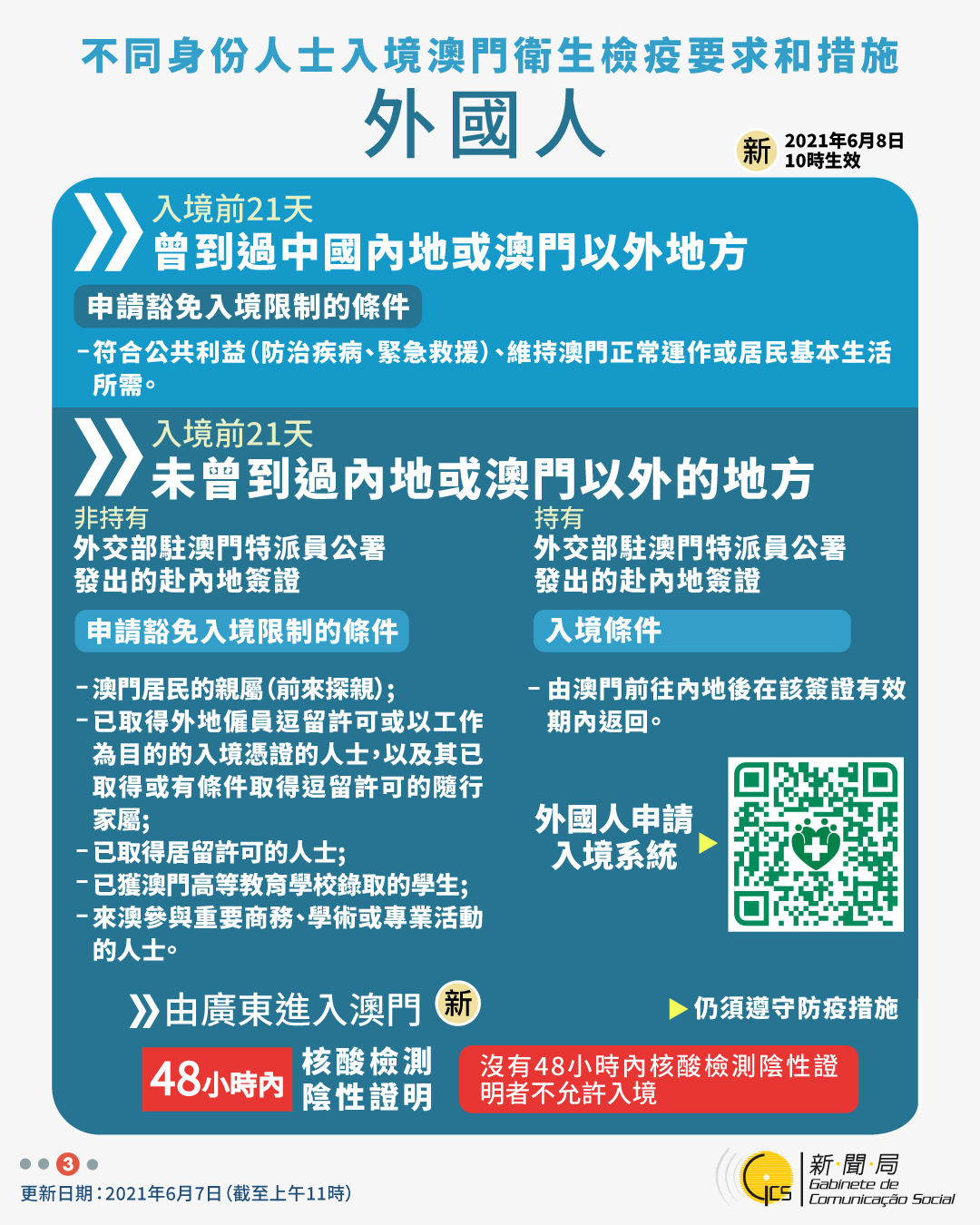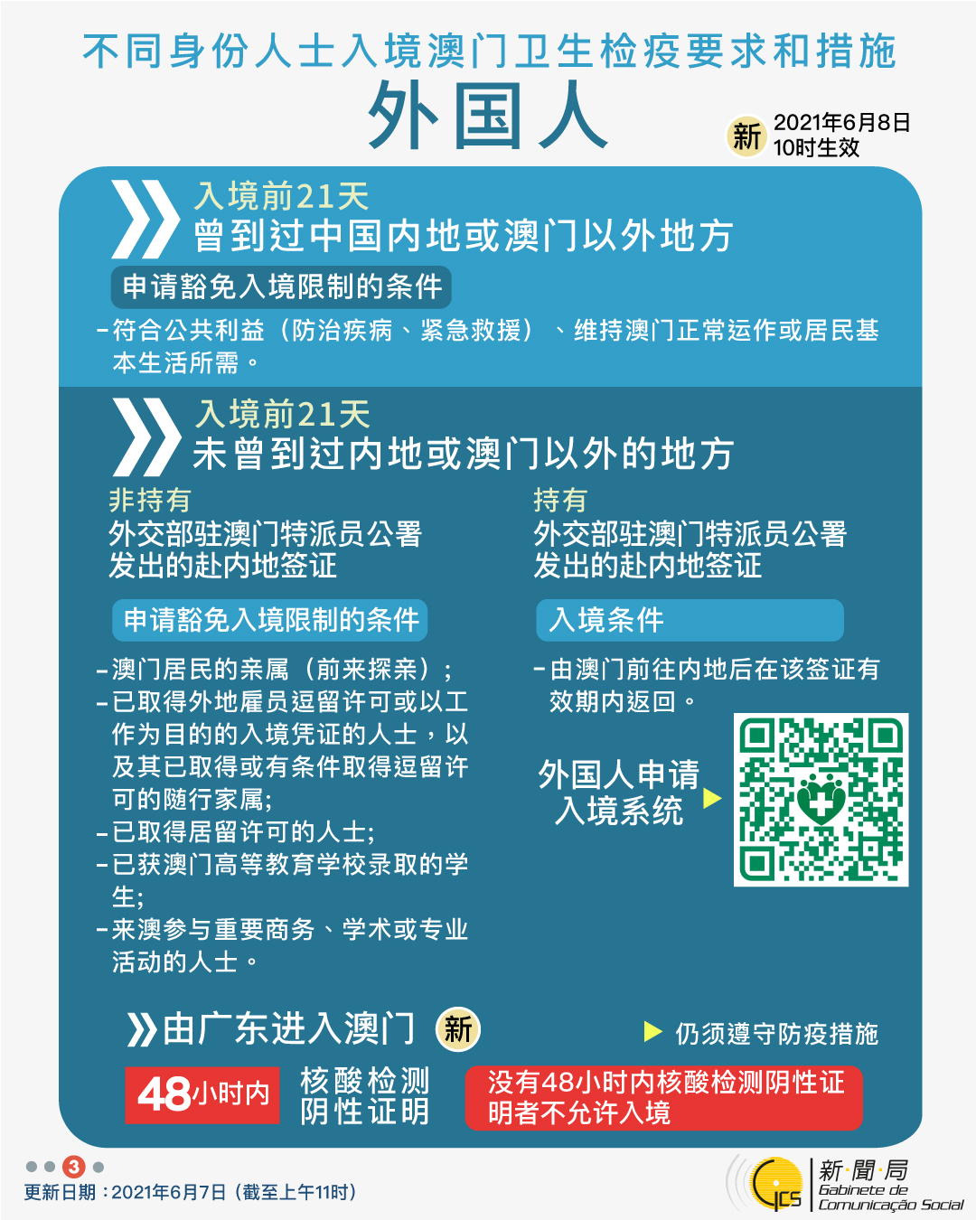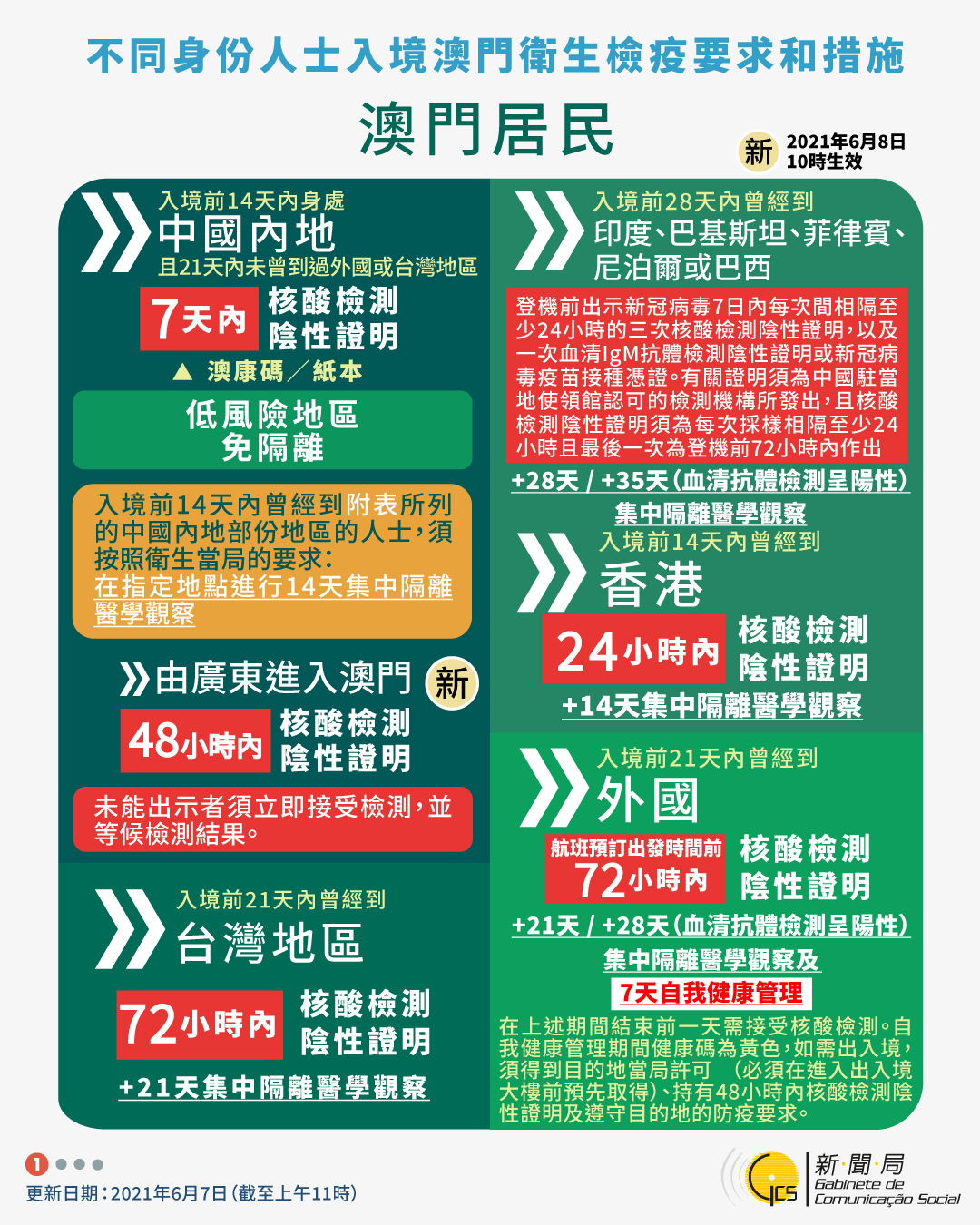 【圖文包】2021/6/7最新入境澳門衛生檢疫要求和措施