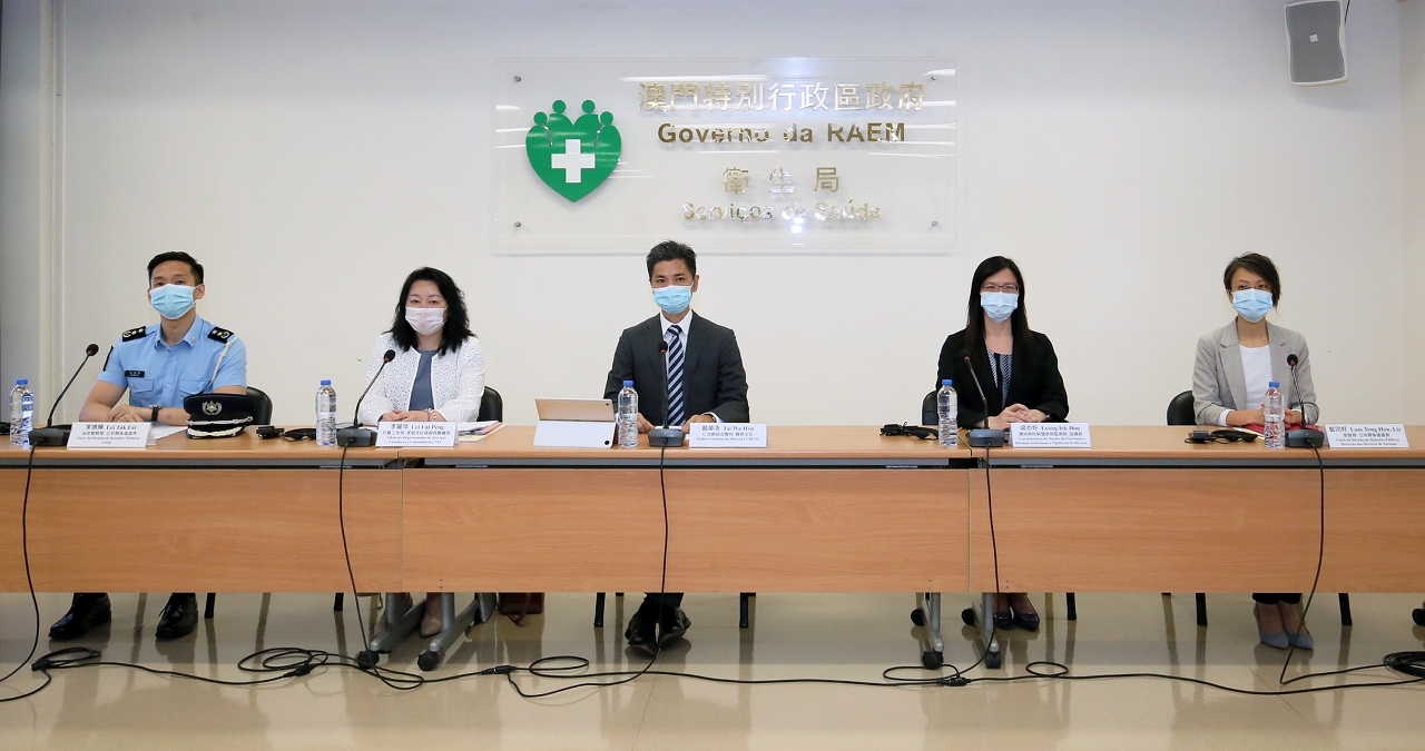 新型冠狀病毒感染應變協調中心(下稱應變協調中心)於今(10)日舉行例行記者會,仁伯爵綜合醫院戴華浩醫務主任、社會工作局家庭及社區服務廳李麗萍廳長、旅遊局公共關係處藍同好處長、治安警察局公共關係處李德輝處長、疾病預防控制中心傳染病防制暨疾病監測部梁亦好協調員共同會見傳媒。