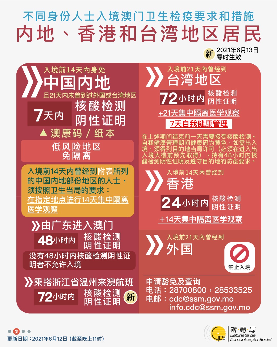 【圖文包】2021/6/12最新入境澳門衛生檢疫要求和措施