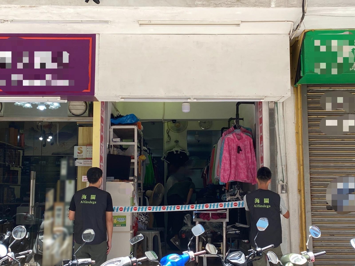 為有效打擊侵權行為,以維護市場秩序,澳門海關恆常派員巡查各區商舖。本月15日,海關對高士德區一店採取行動,查獲侵權服飾共517件,一名男性店舖負責人涉案,已被移送檢察院偵辦。