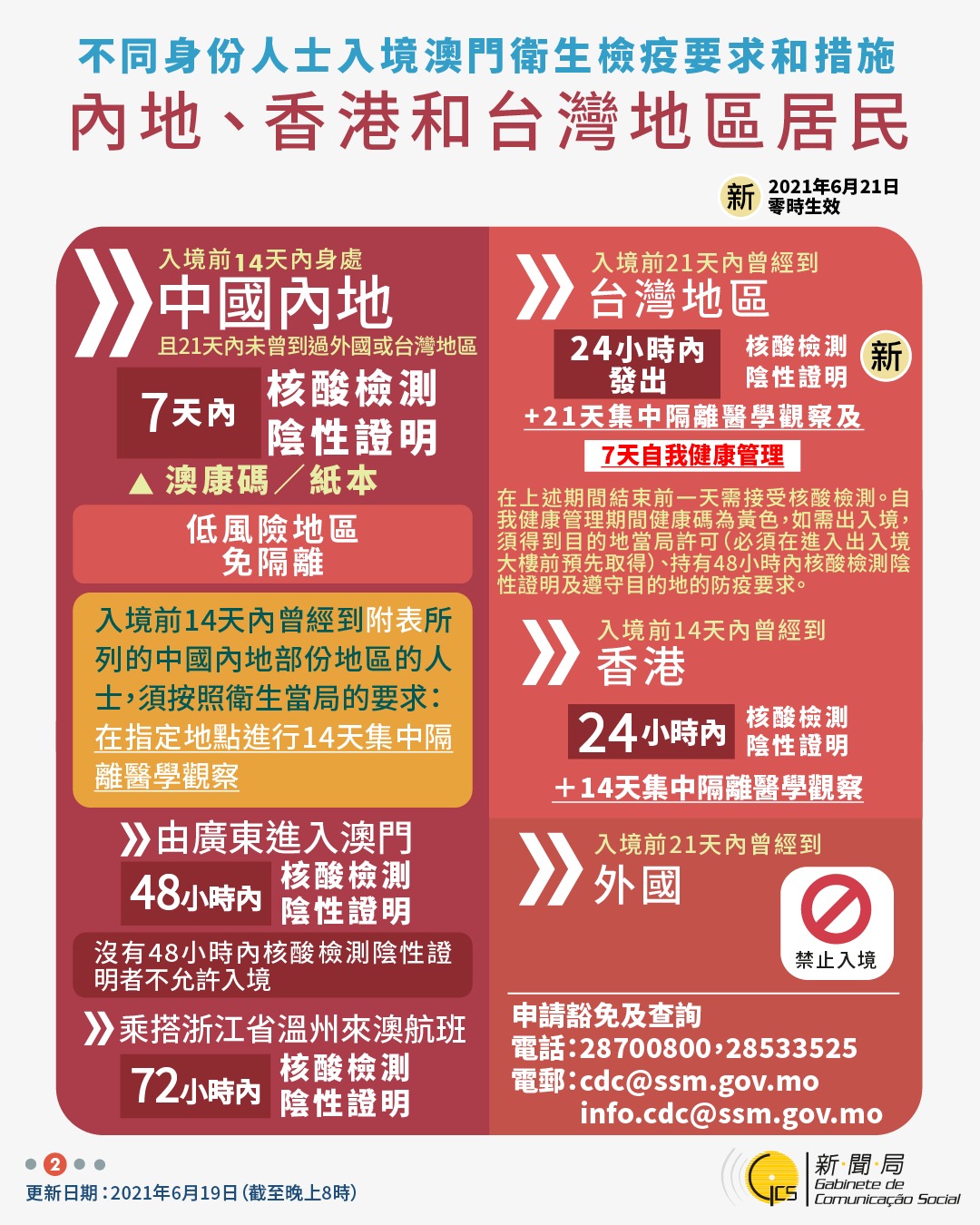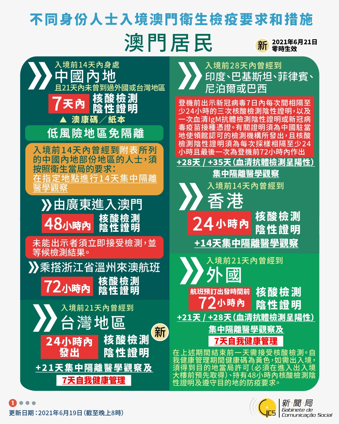 【圖文包】2021/6/19最新入境澳門衛生檢疫要求和措施
